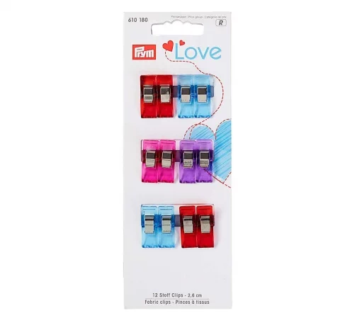 Клипсы для работы с тканями 'Prym' из серии 'Love'- порадует вас, не только отличными характеристиками, но и прятным внешним видом. Клипсы, являются прекрасной альтернативой обычным булавкам, которые обычно используют при шитье. Необходимы в тех случаях, когда следы от булавок, на ткани, остались бы навсегда. Благодаря клипсам, материал фиксируется просто и быстро и не повреждается. Обеспечивают прочное скрепление при прихватывании нескольких слоев тканей. Применяются в пэчворке, шитье, вязании.