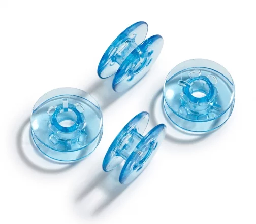Размер: диаметр 21,9 мм, высота 9 мм. Количество в упаковке: 4 штуки. Пластиковые шпульки Prym подходят для вертикально вращающегося челнока, который устанавливается на промышленных швейных машинах, а также на дорогих моделях бытовых машин SINGER, DÜRRKOPP, PFAFF и MEISTER и других. Изготовлены из прозрачного пластика, что позволяет быстро увидеть цвет нити и определить, сколько осталось в запасе.