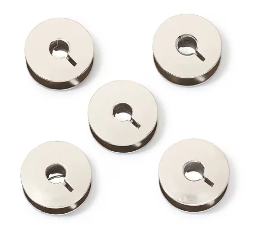 Шпульки металлические для вертикального челнока двойного обегания с прямоугольной выемкой. Диаметр: 21,9 мм. Высота: 9 мм.