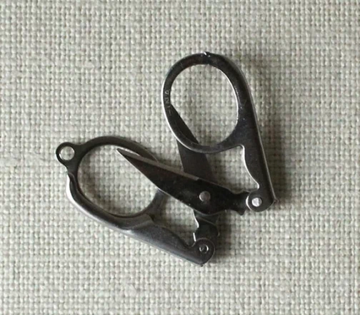 Складные ножницы изготовленные из металла, будут удобны в дороге и безопасны для хранения. Ножницы предназначены для обработки краев изделия и обрезания рабочих ниток. Длина ножниц: 8 см.