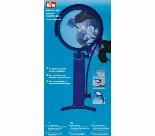 Эта лупа Prym с линзой, вращающейся на 180 градусов, и дополнительной линзой малого размера удобна для чтения и различной мелкой работы – вышивания, плетения, сборки бижутерии, механизмов или конструктора, заточки ножей.