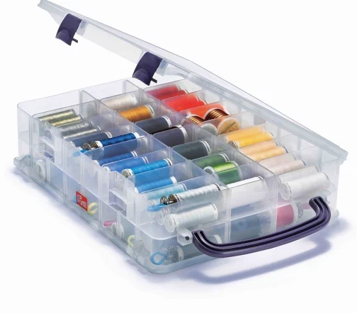 – Внутри помещается примерно для 48 стандартных катушек ниток, подходит также для хранения шпулек с держателями.
