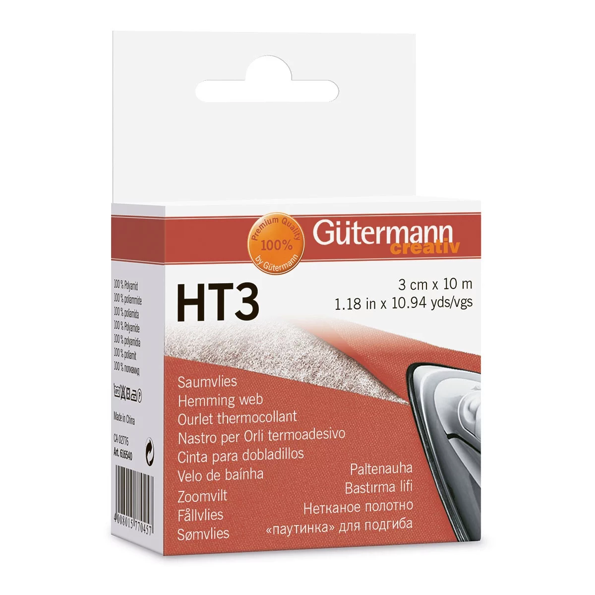 Термоклеевая паутинка Gutermann (Германия) предназначена для подгиба низа изделий из ткани, трикотажа и других материалов. С помощью паутинки легко и быстро можно обработать низ штор. Фиксируется с помощью горячего утюга (150°C).