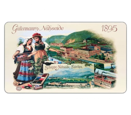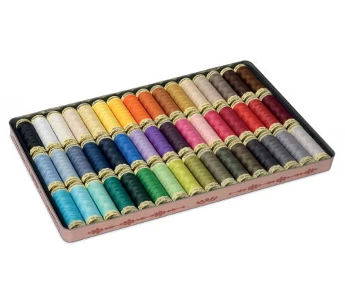 Металлическая коробка 'Ностальгия' в ретро-стиле с набором ниток Sew-All от немецкого бренда Gutermann – прекрасный подарок любителям шить, мастерить сумки, головные уборы и аксессуары, вышивать, заниматься рукоделием.