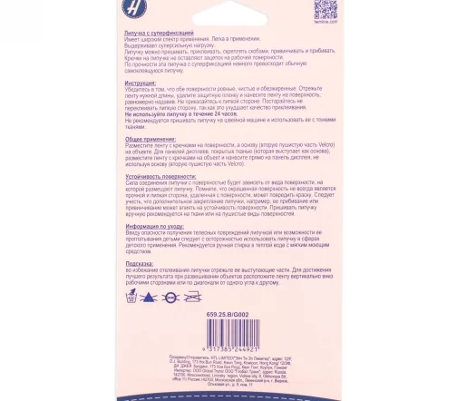 Увеличен срок эксплуатации, расчитана на более 300 раскрываний. Липучку можно приклеить к гладкой обезжиренной поверхности, а также пришить на текстиль, прикрепить скобами к пластику, дереву, приклепать, привинтить, прибить. Сфера применения: ламбрекены штор, обивочный материал, мягкая мебель, принадлежности для дома и мастерской, походные приспособления, спортивная одежда, крепеж аксессуаров в автомобиле, принадлежности для хобби. Рекомендуем для текстильного изделия с липучкой только ручную стирку в теплой воде с мягким моющим средством.