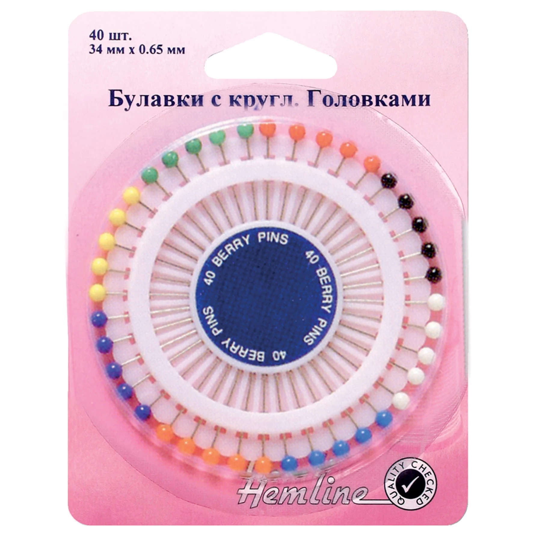 Булавки из никелированной стали ”Ягодка” с цветными пластиковыми головками. Аккуратно размещаются в традиционном ”булавочном колесе”.