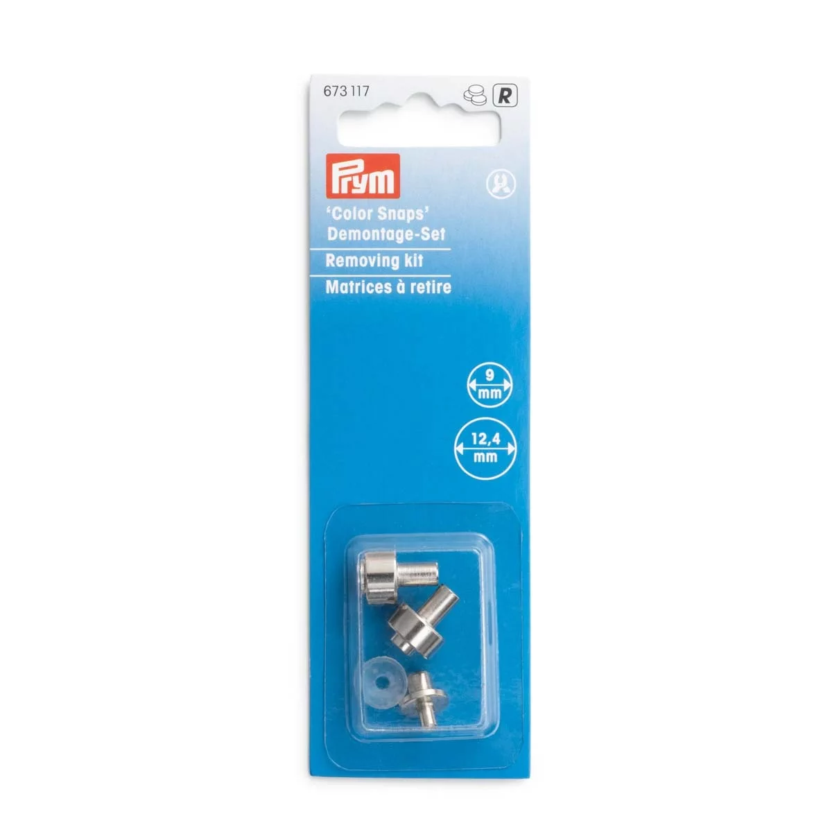 Набор насадок для удаления кнопок Color Snaps PrymLove представлен на блистере с европодвесом. Диаметр насадок – 9 мм и 12,4 мм. В состав набора входит: матрицы для удаления кнопок, люверсов и холнитенов. Если вы решите починить и украсить детский комбинезон, данное устройство выручит вас и ускорит процесс. Используемые в производстве высококачественные материалы подарят долгий срок службы инструментам. Насадки очень просты в применении, в комплекте прилагается подробная инструкция по использованию.