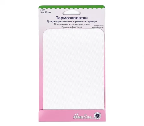 690.W Термозаплатки, 10 х 15 см, 2 шт., полиэстер/хлопок, цвет белый, Hemline