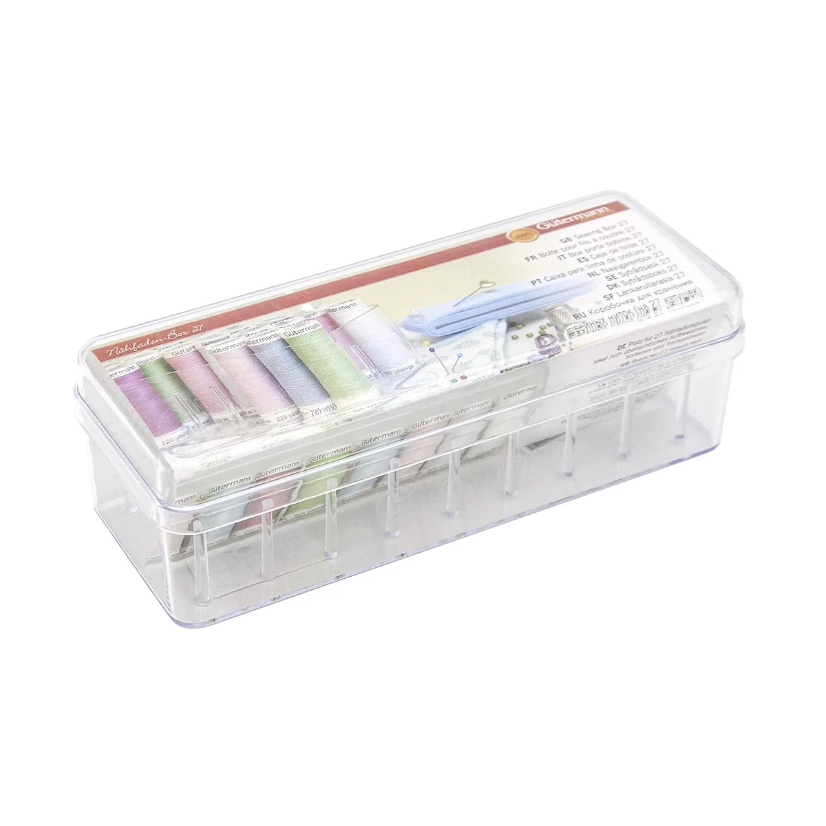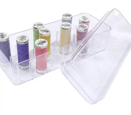 Удивительно удобный контейнер для организованного хранения и транспортировки до 27 катушек с нитками. Крышка органайзера плотно защелкивается, исключается возможность случайного высыпания. Выполнена из полупрозрачного прочного пластика, всегда видно весь объем содержимого. В органайзере имеется 27 держателя для катушек с нитками, это позволит аккуратно разложить и всегда иметь под рукой необходимые швейные принадлежности. Этот органайзер пригодится не только любителям шитья и рукоделия, а и обычным хозяйкам в быту.