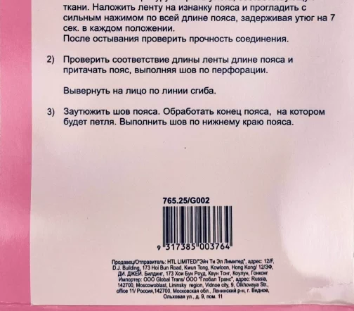 Выкроить деталь пояса (припуски по ширине пояса учтены в перфоленте), наложить необходимую по длине полосу флизелиновой ленты и пригладить утюгом на 2 температурном режиме без пара.