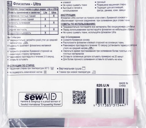 В упаковке содержится рулон шириной 43 см, длина 93 см. Паутинка термоклеевая, двусторонняя (ультра). Подходит для использования вместо прикалывания и наметки Обеспечивает прочную постоянную связь без необходимости закрепления. Идеально подходит для сцепления: ткани, войлока, денима, кожи, замши. Рисуйте на бумажной подложке чтобы легко создавать аппликации. Машинная стирка. На упаковке многоязычная полная инструкция. Размеры изделия: 10 x 2 x 29 см.