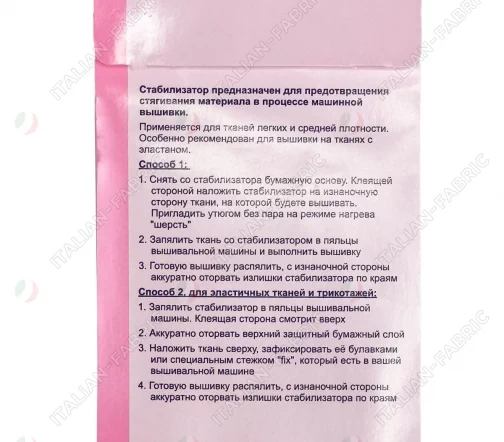 Стабилизатор предназначен для предотвращения стягивания материала в процессе машинной вышивки.