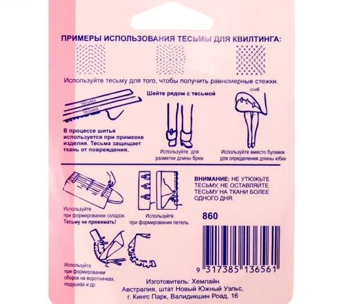Тесьму не утюжить! Не оставлять на ткани более 1-го дня.