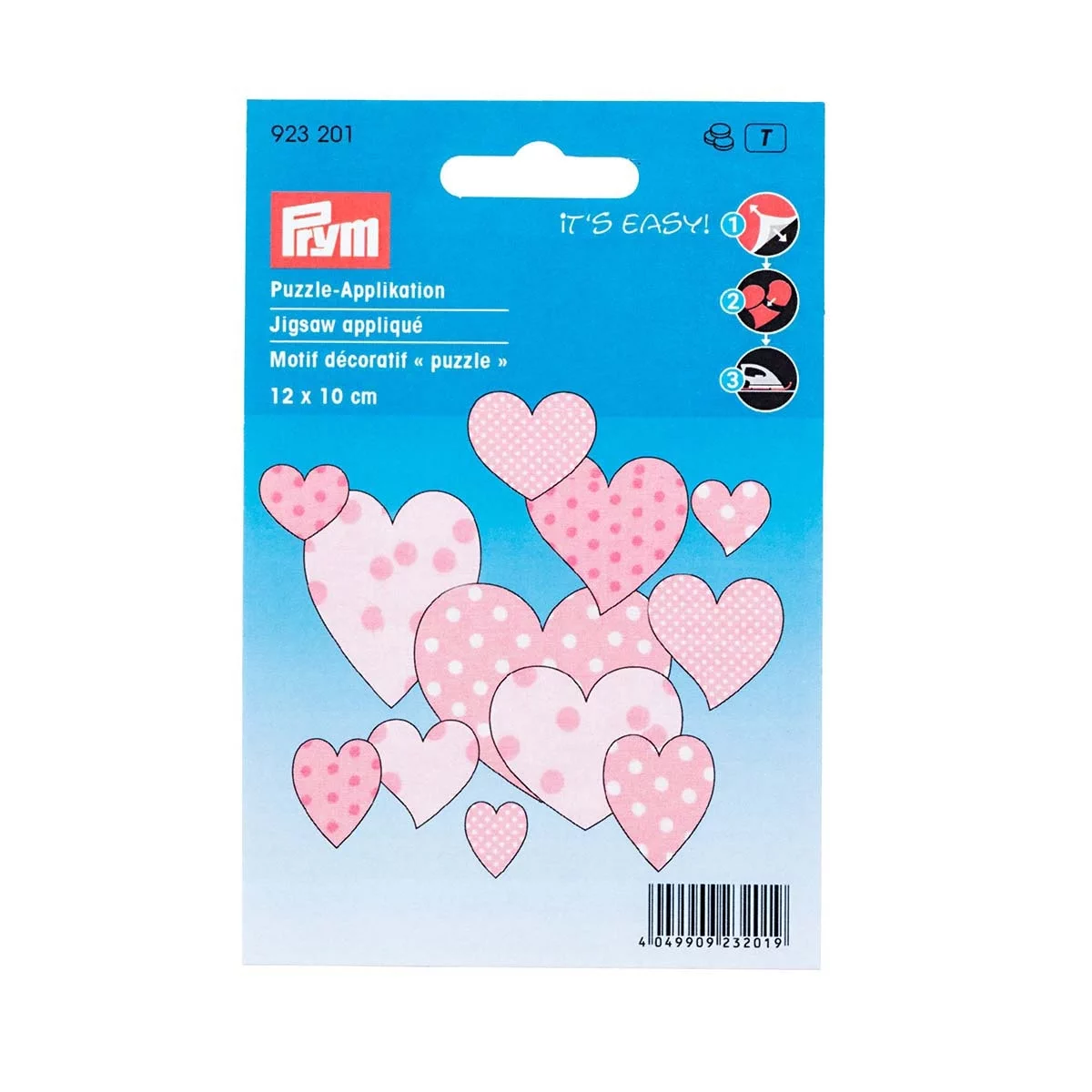 Термоаппликация,в виде пазла из розовых сердечек. Аппликации на клеевой основе, являются отличной альтернативой вышивке. Используются для украшения взрослой и детской одежды: футболок, толстовок, джинсовых курток, шапок, кепок и др. Применяется в качестве модных аппликаций для аксессуаров: сумок, рюкзаков, чехлов для телефона и многих других вещей. Подойдет для маскировки поврежденных участков на ткани. Прикрепляются с помощью горячего утюга, при необходимости, заплатку можно усилить ручной или машинной строчкой.Чтобы не повредить рисунок, проглаживайте аппликацию через тонкую х/б ткань. Ежедневно используя продукцию Prym, Вы ощутите заботу компании о Вашем комфорте и удобстве. Воплощайте любую Вашу творческую идею с безупречным материалом Prym!