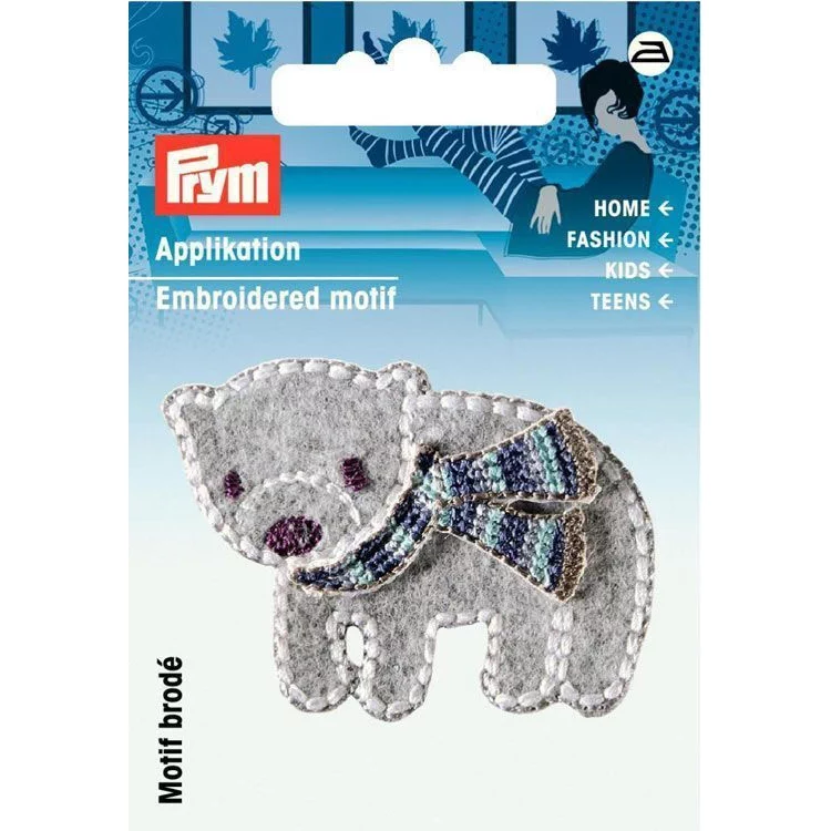 925555 Термоаппликация "Медведь серый с шарфом" 6,4х9,3 см, Prym