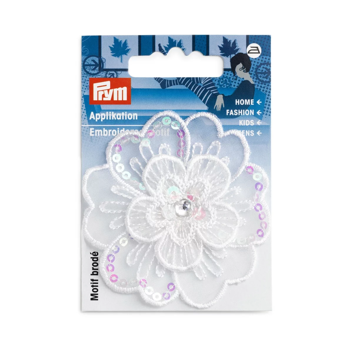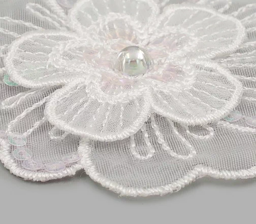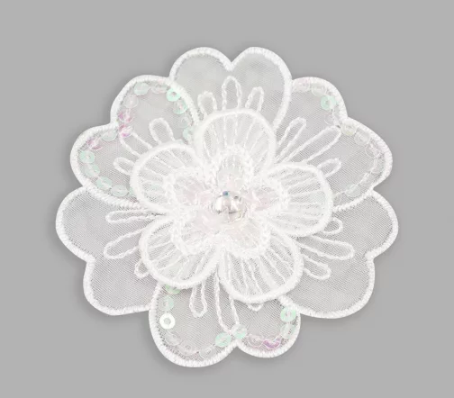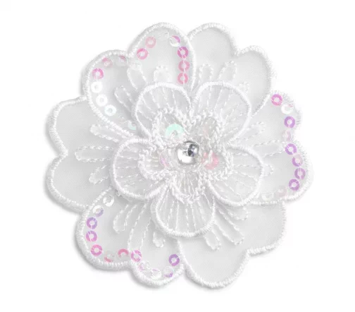 926706 Термоаппликация "Цветок праздничный белый со стразом и пайетками", 6,5см, Prym