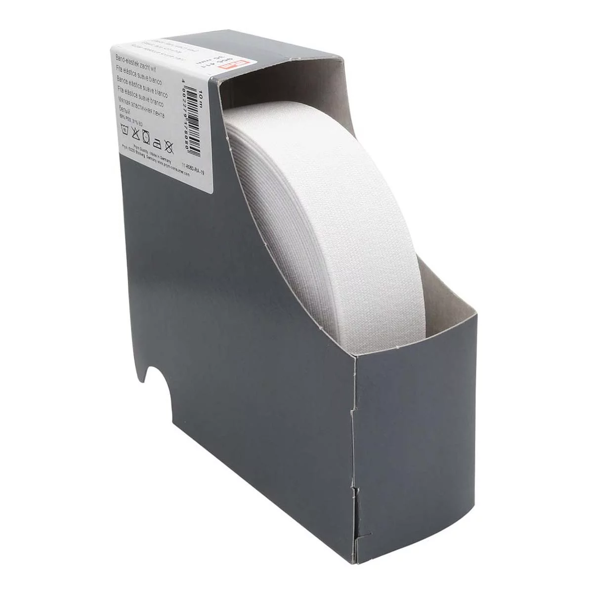 Мягкая вязаная эластичная лента. Вязаную эластичную ленту рекомендуется использовать для тонких легких тканей. Стабильная, для вдевания и настрачивания, универсальна в использовании. Состав 69%; полиэстер, 31%; эластан. Коэффициент растяжимости 140%;. Разрешена стирка при температуре воды до 60°С, нельзя отбеливать, барабанная сушка при средней температуре °С 80, температура глажения до 110 °С, химчистка не разрешена.