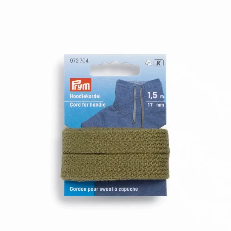 Шнур для худи выполнен из трикотажа с рельефной поверхностью. Все что нужно – это просто вдеть его в изделие. Размер шнура – 17 мм в ширину и 1.5 м в длину. Цвет черный, подходит для изделий абсолютно любой расцветки. Очень часто шнур покупают как готовое решение и используют для капюшонов или пояса изделия. Prym – семейное предприятие Германии, для которого качество всегда на первом месте. Компания славится своими товарами для шитья и рукоделия и оригинальными разработками. Размер: ширина 1.7 см; длина 1.5 м. Производитель: Германия