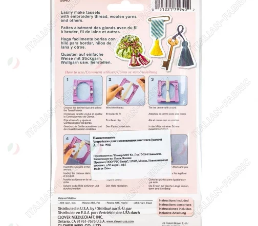 При помощи этого устройства можно легко сделать красивые кисточки из любых ниток. Кисточки можно сделать трех размеров: 3, 4 и 5 см.