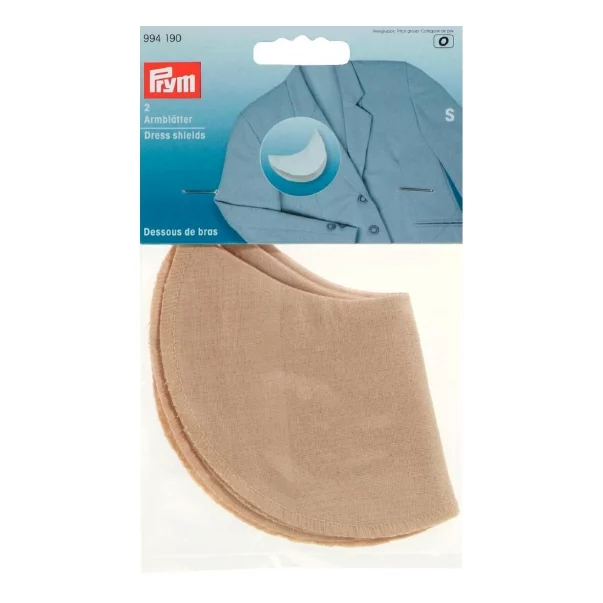 Для предотвращения неприятных пятен пота на высококачественной верхней одежде есть подмышники из 80% полиэстра и 20% хлопка. Хорошо впитывающие подмышники вшиваются точечно или фиксируются специальными булавками для крепления подмышников. В ассортименте Prym они предлагаются в размерах S, M и L и в цветах, подходящих светлой и темной одежде. Подмышники можно стирать при температуре до 60 °С. На карте находятся 2 штуки.