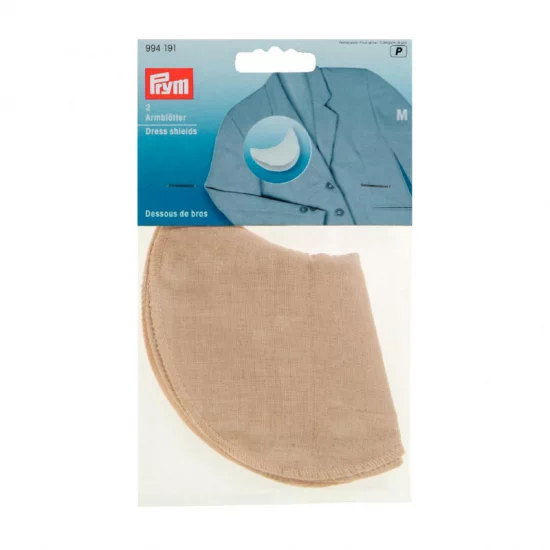 Для предотвращения неприятных пятен пота на высококачественной верхней одежде есть подмышники из 80% полиэстра и 20% хлопка. Хорошо впитывающие подмышники вшиваются точечно или фиксируются специальными булавками для крепления подмышников. В ассортименте Prym они предлагаются в размерах S, M и L и в цветах, подходящих светлой и темной одежде. Подмышники можно стирать при температуре до 60 °С. На карте находятся 2 штуки.