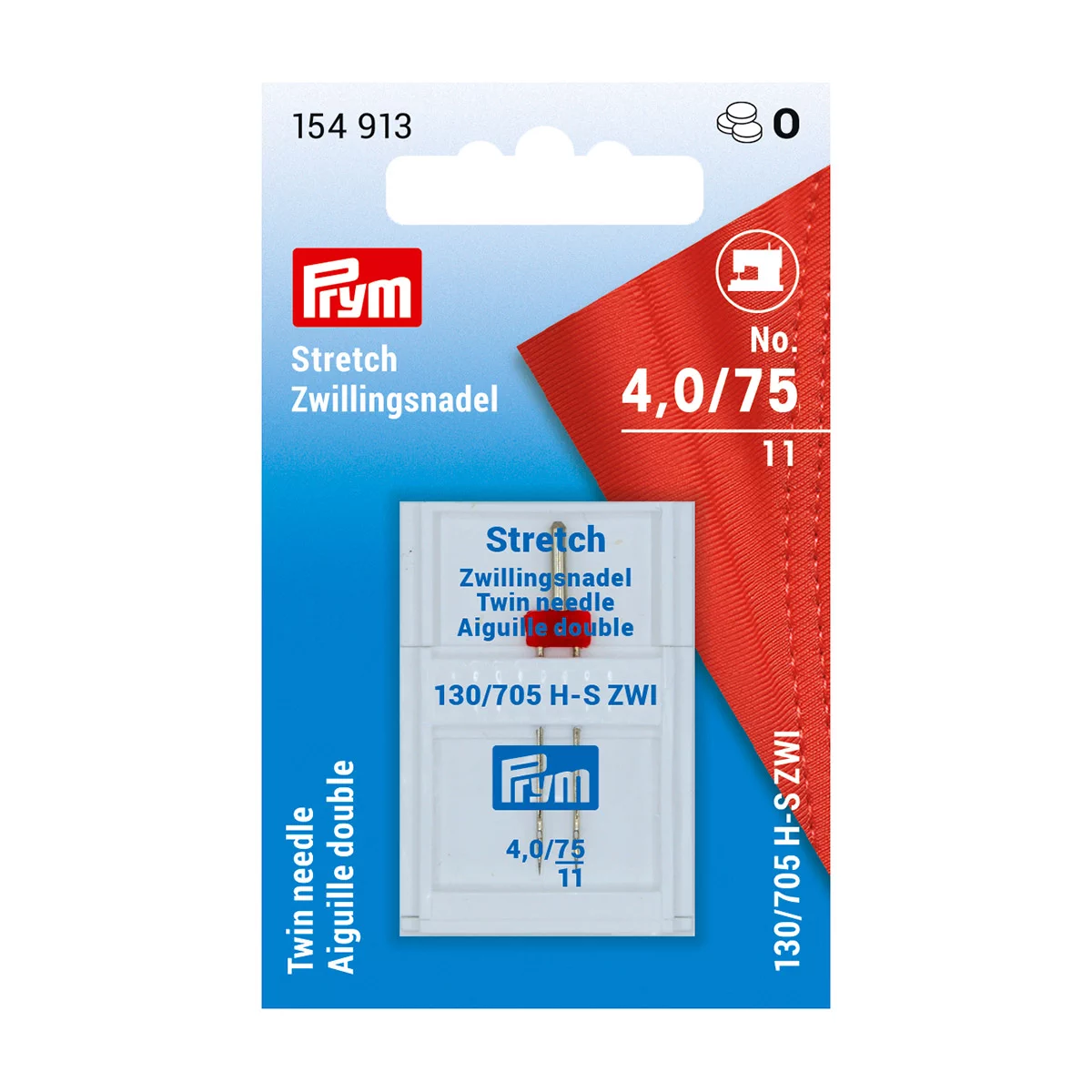 154913 Двойная игла для швейных машин для стрейчевой ткани 75/4,0 мм, Prym