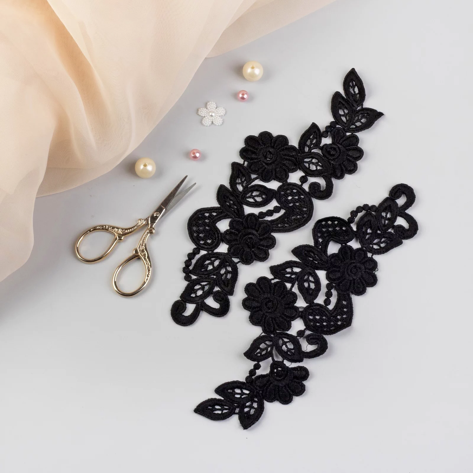 Аппликации пришивные лейсы, п/э, 23х7,5см, 2шт., цвет черный, 2797327