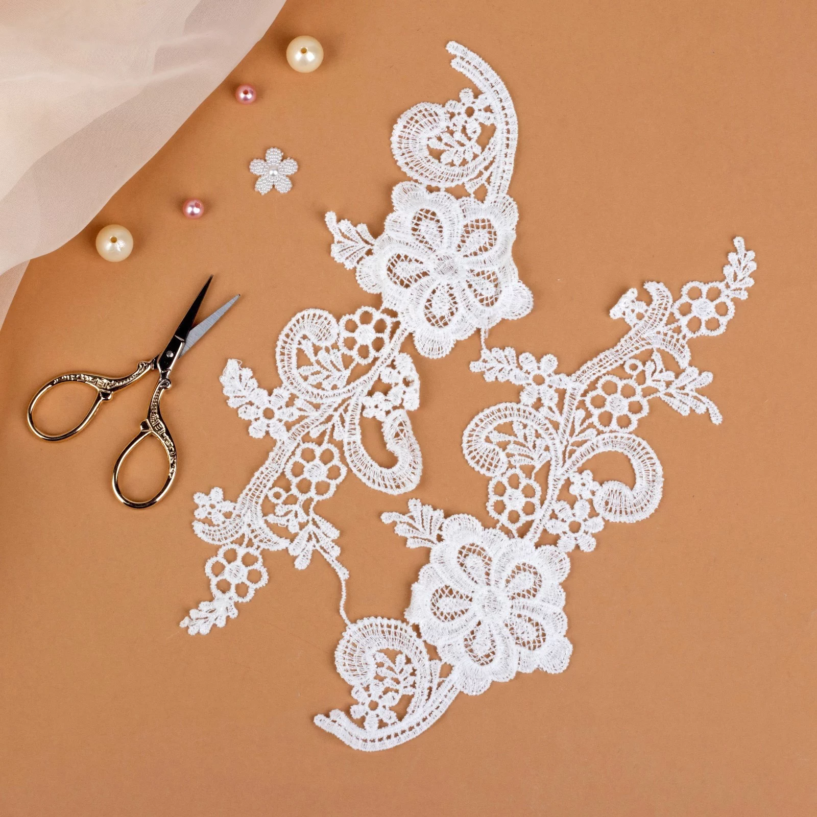 Парные кружевные аппликации, пришиваются к ткани и могут являться прекрасным украшением на одежде. Очень часто кружевной фрагмент используют в праздничных или тематических костюмах, чтобы подчеркнуть идею образа. Пришивной лейс в целом имеет большую область применения в одежде, обуви, сумках, шапках, аксессуарах и других принадлежностях гардероба. Исторически сложилось так, что роль кружевных фрагментов в одежде имеет свой смысл и носит определенный характер. Для рукодельницы лейс- это целый кладезь идей и возможности сделать изделие интересным и образ неповторимый.