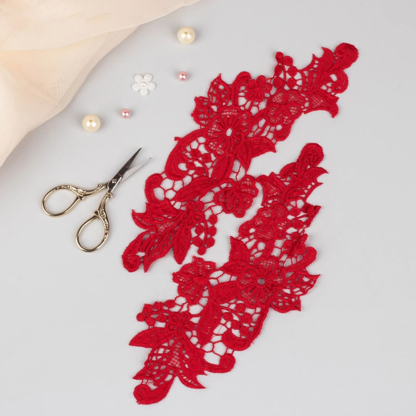 Аппликации пришивные лейсы, п/э, 26х10см, 2шт., цвет красный, 3576283