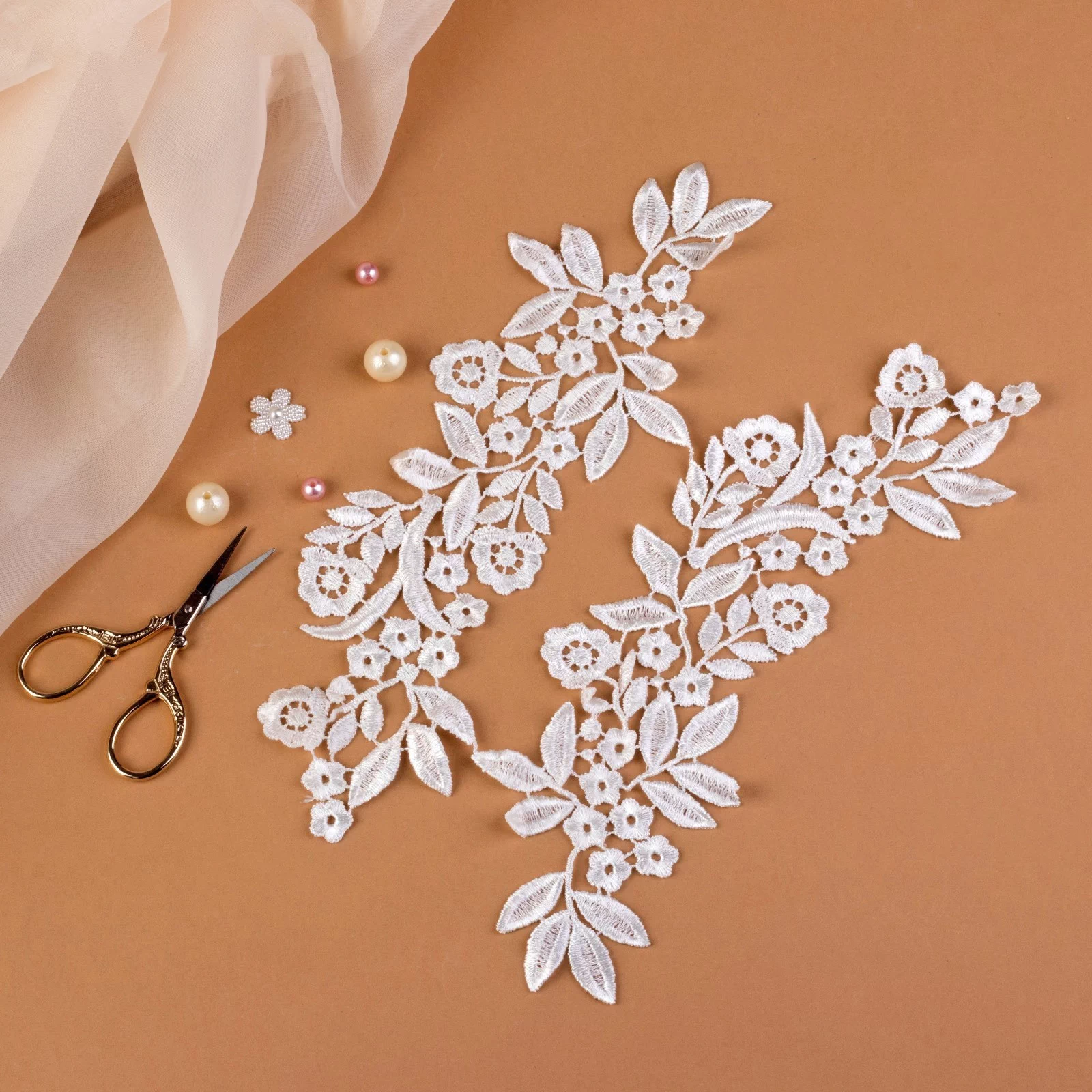 Парные кружевные аппликации, пришиваются к ткани и могут являться прекрасным украшением на одежде. Очень часто кружевной фрагмент используют в праздничных или тематических костюмах, чтобы подчеркнуть идею образа. Пришивной лейс в целом имеет большую область применения в одежде, обуви, сумках, шапках, аксессуарах и других принадлежностях гардероба. Исторически сложилось так, что роль кружевных фрагментов в одежде имеет свой смысл и носит определенный характер. Для рукодельницы лейс- это целый кладезь идей и возможности сделать изделие интересным и образ неповторимый.