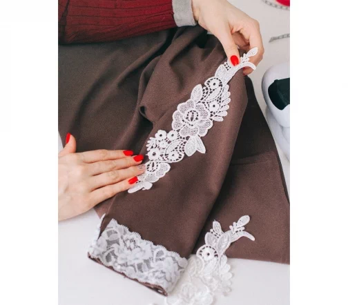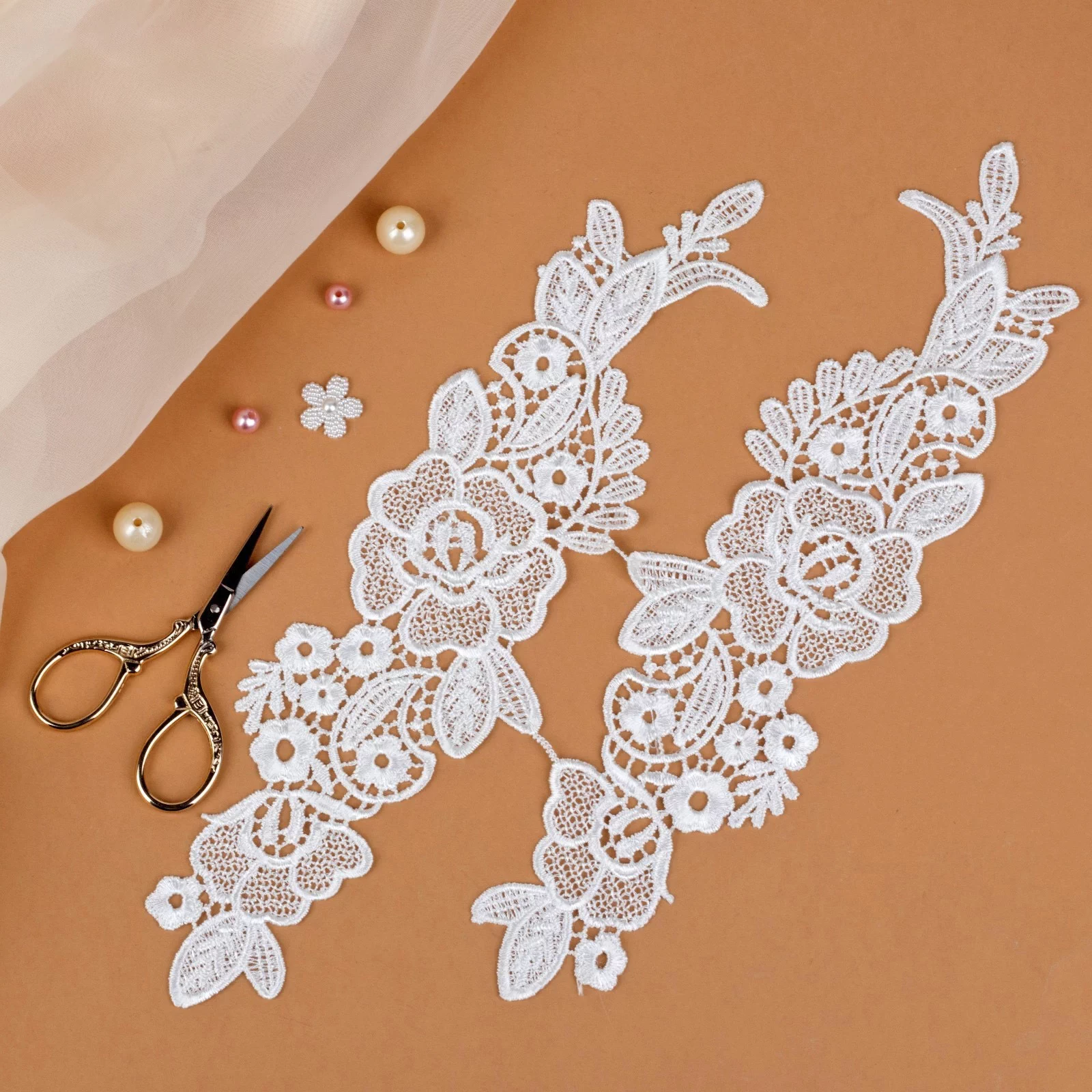 Парные кружевные аппликации, пришиваются к ткани и могут являться прекрасным украшением на одежде. Очень часто кружевной фрагмент используют в праздничных или тематических костюмах, чтобы подчеркнуть идею образа. Пришивной лейс в целом имеет большую область применения в одежде, обуви, сумках, шапках, аксессуарах и других принадлежностях гардероба. Исторически сложилось так, что роль кружевных фрагментов в одежде имеет свой смысл и носит определенный характер. Для рукодельницы лейс- это целый кладезь идей и возможности сделать изделие интересным и образ неповторимый.