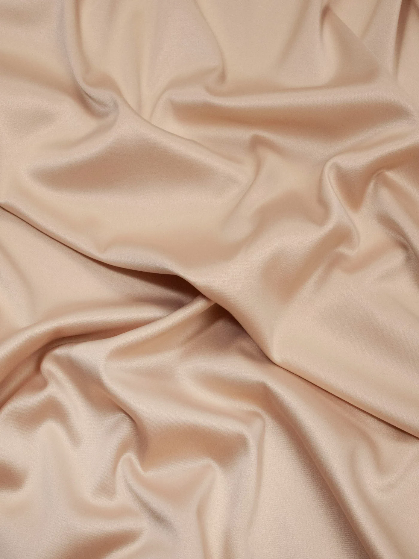 Высокого качества стрейчевый атлас с шелковым блеском с лицевой стороны. Эффектная ткань широкого применения. Подходит как для пошива самостоятельных платьев и костюмов, туник, так и для использования в качестве основы платья-футляра с дополнением кружева или вышивки.