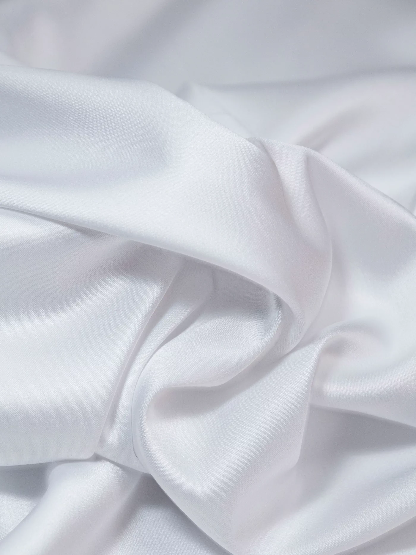 Высокого качества стрейчевый атлас с шелковым блеском с лицевой стороны. Эффектная ткань широкого применения. Подходит как для пошива самостоятельных платьев и костюмов, туник, так и для использования в качестве основы платья-футляра с дополнением кружева или вышивки.