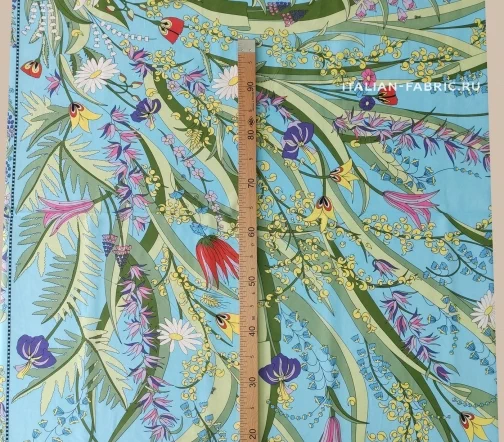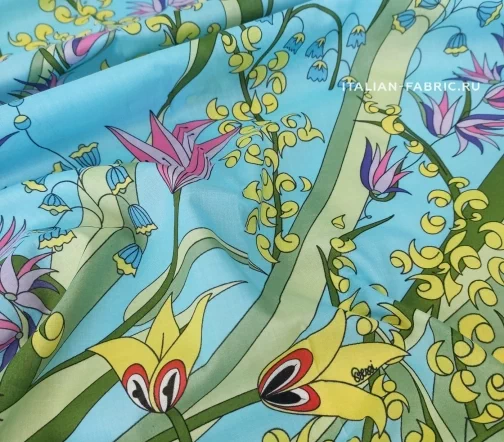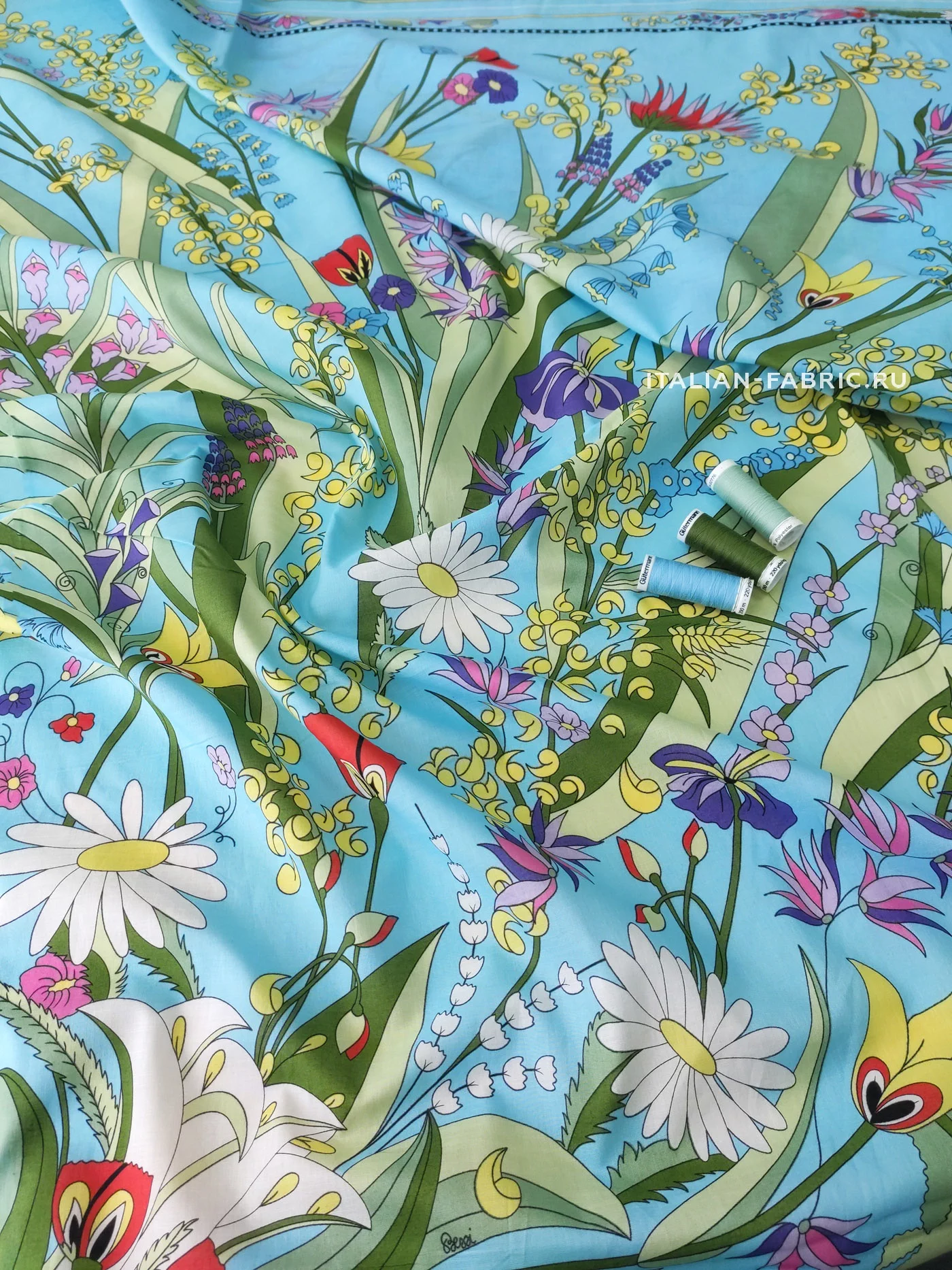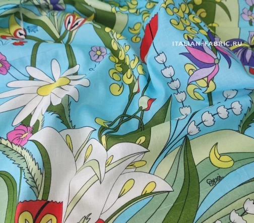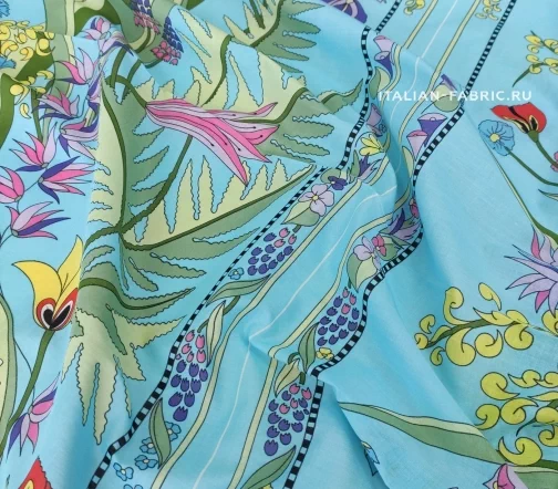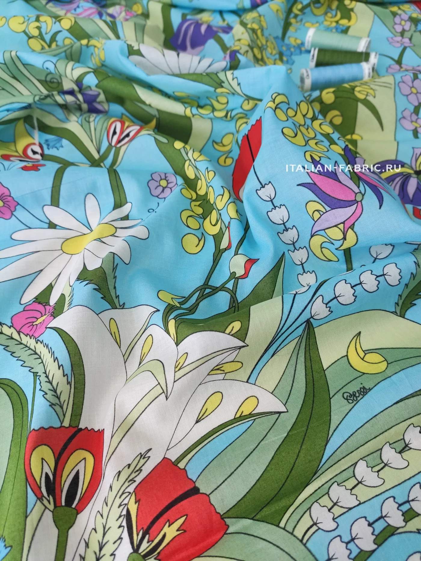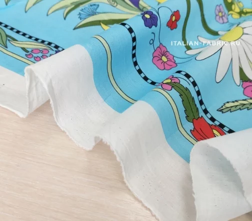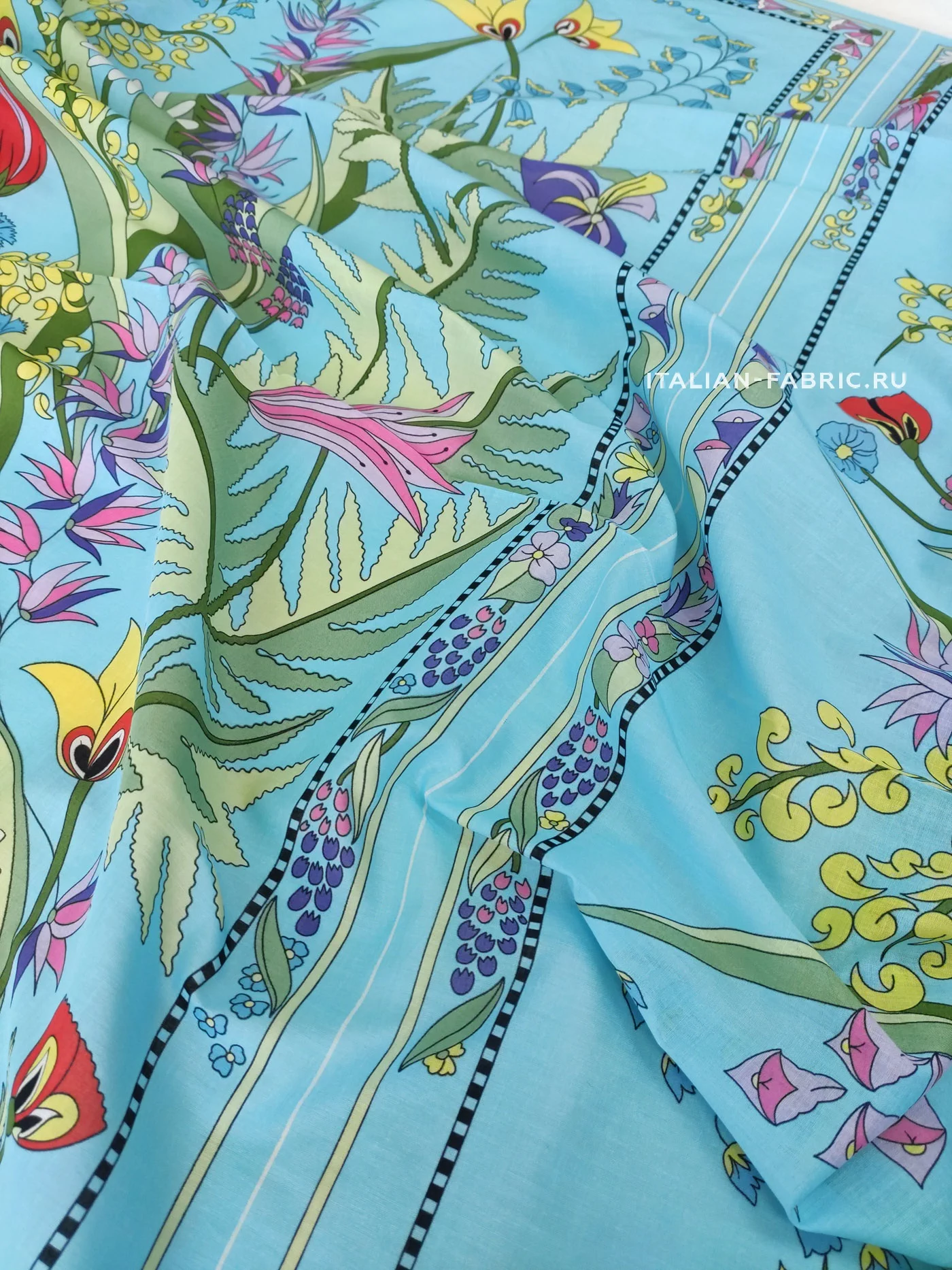 Высота купона 138 см. Подписной хлопковый батист итальянской марки Bessi. Фон голубой.