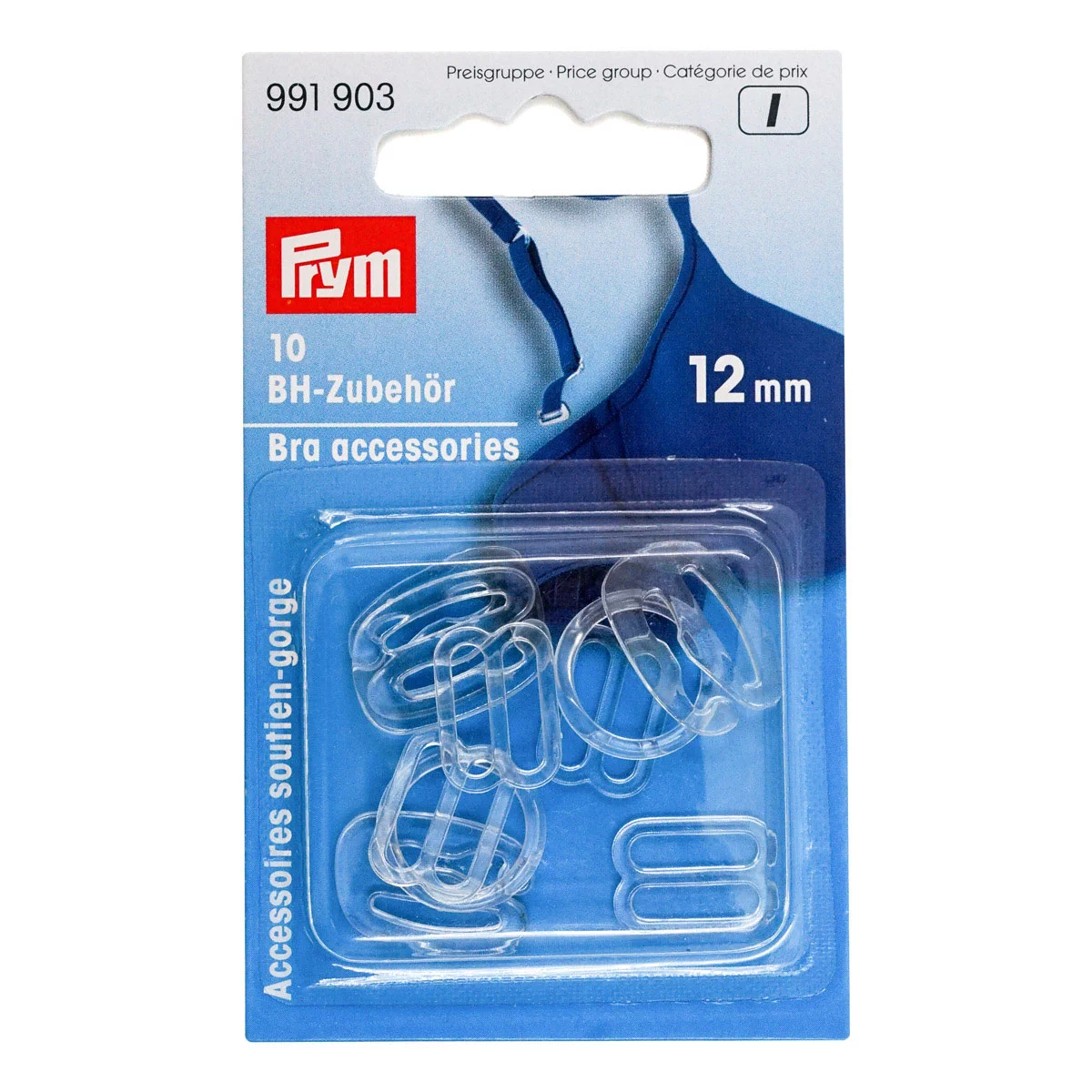 991903 Аксессуары для бюстгальтера, пластик, прозрачный, 12 мм, упак./10 шт., Prym