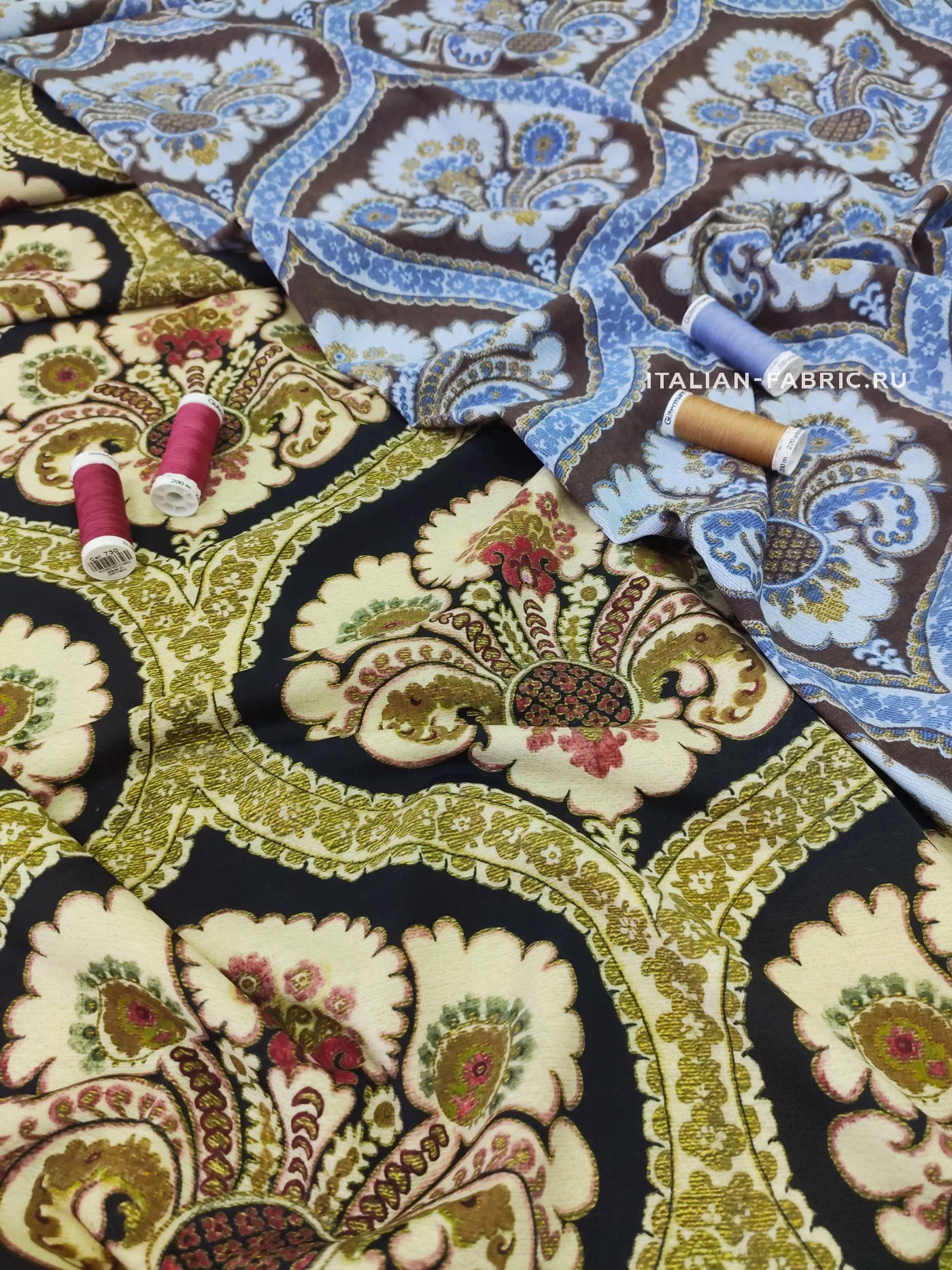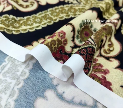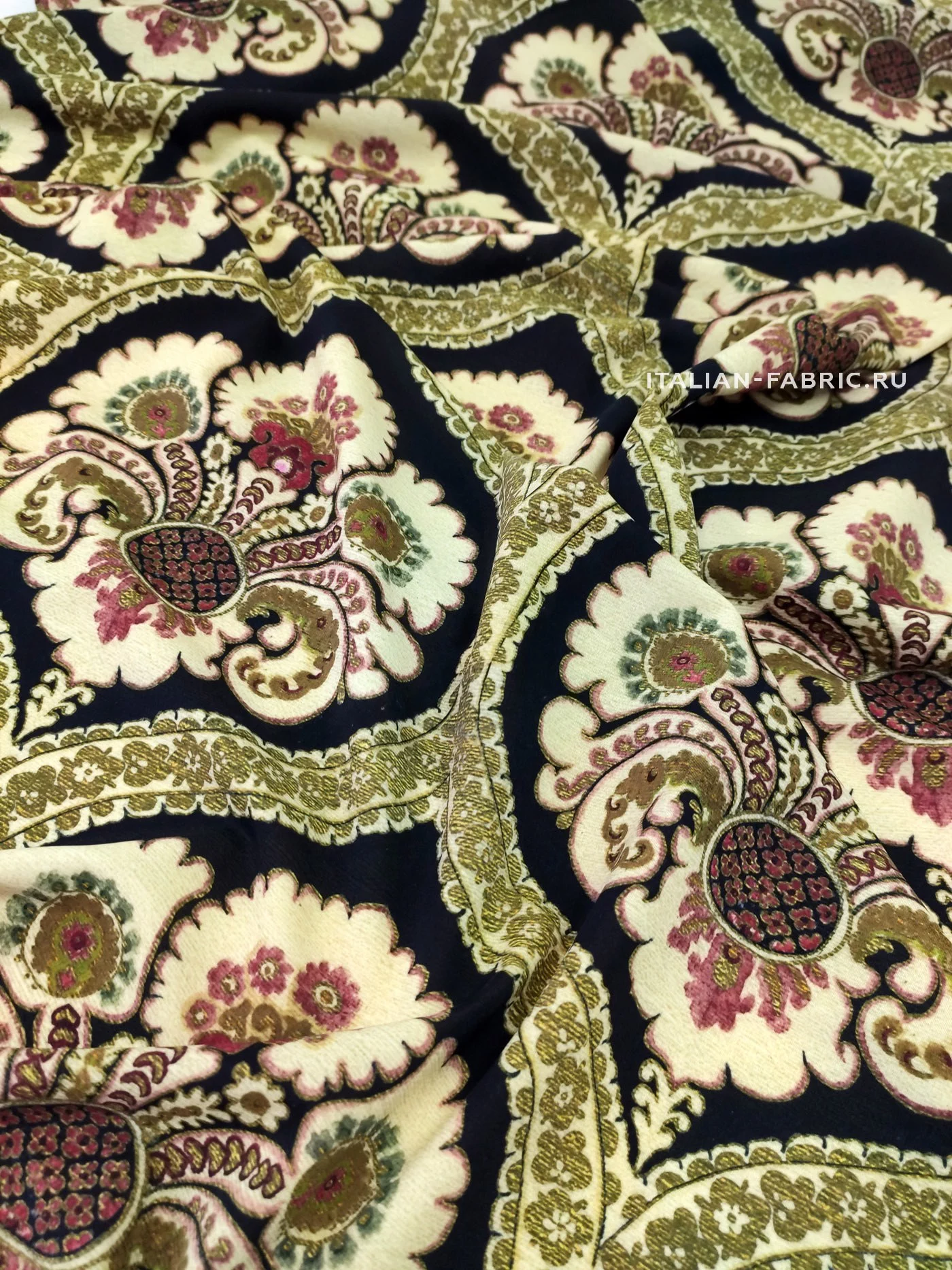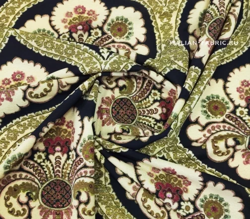 Бифлекс с необычайно красивым и замысловатым индийским орнаментом в зеоеных оттенках на черном фоне.
