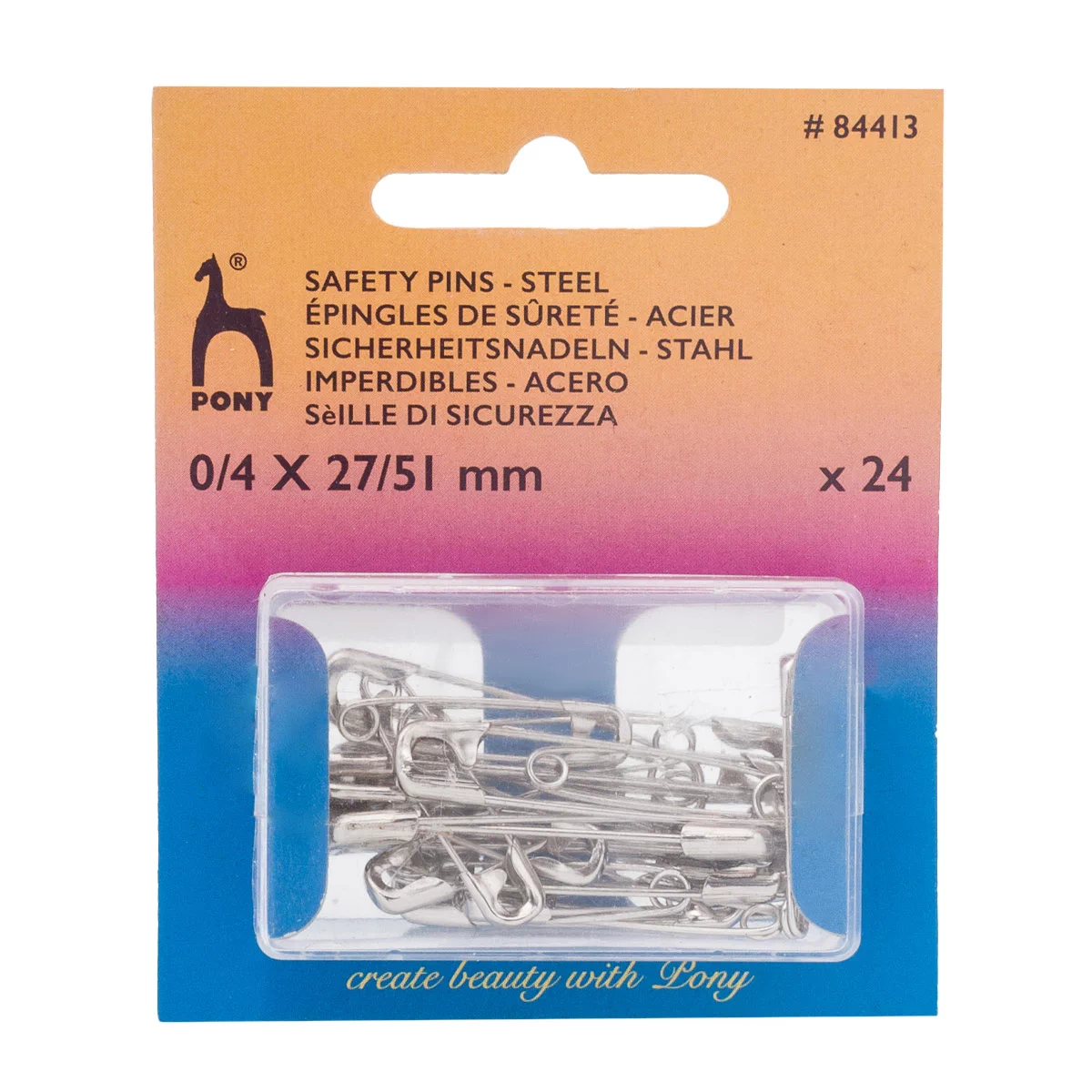 Английские булавки PONY с закрытой застежкой изготовлены из нержавеющей стали. Достаточно прочные, отлично пружинят. Тонкий конец булавки легко проникает в ткань, не повреждая волокна.