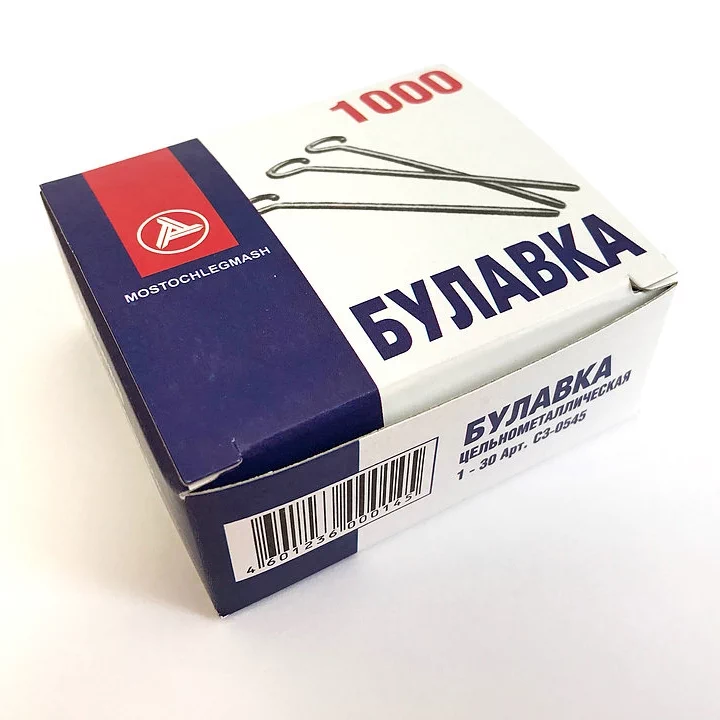 Набор портновских булавок с головками в форме петельки. Наиболее распространенный тип булавок. Головка - петелька достаточно видна на изделии, удобна в работе, и благодаря плоской форме не будет мешать при отпаривании деталей. Булавки предназначены для скалывания отдельных деталей. Применяются при раскрое, примерке, пошиве изделий из текстиля, создании различных поделок, и во многих других видах рукоделия. Булавки упакованы в картонную коробочку.