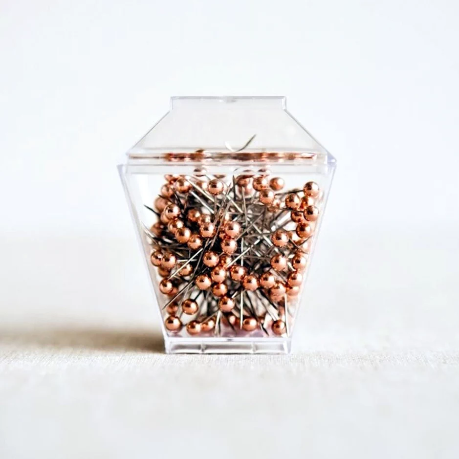 N4366 Булавки в пластиковом боксе, сталь, 38х0,6мм, 150шт., цвет роз.золото, Hemline
