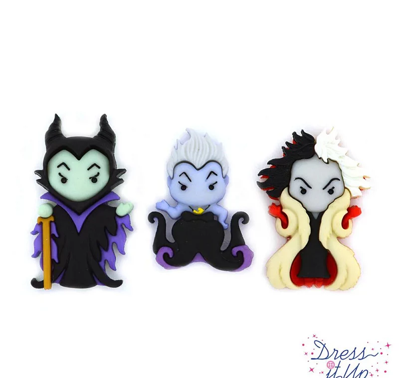 Декоративные пуговицы Dress It Up "Урсула, Круэлла Де Виль и Малефисента", 3 шт., 9511