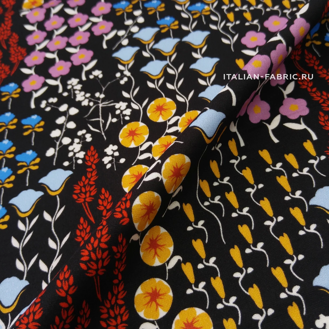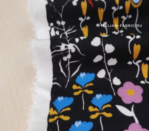 Основной фон черный. Пластичное трикотажное полотно. Для пошива платья, туник, юбочек, кофточек и свитшотов.
