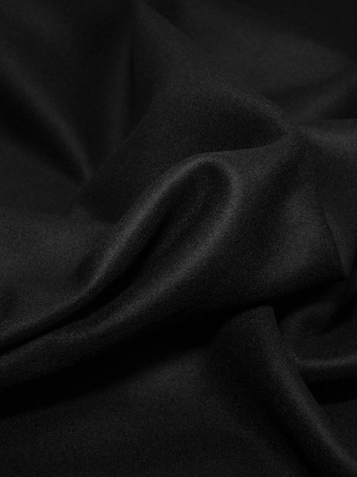 Безупречный пальтовый драп - тяжелая, в меру плотная ткань с небольшим ворсом. Два её главных козыря это: двухслойность (слои можно разделять) и состав. В пальто из такой ткани будет тепло, но не жарко, а за счет кашемира в составе, изделие будет менее тяжелым и более комфортным, чем пальто из 100% шерсти.