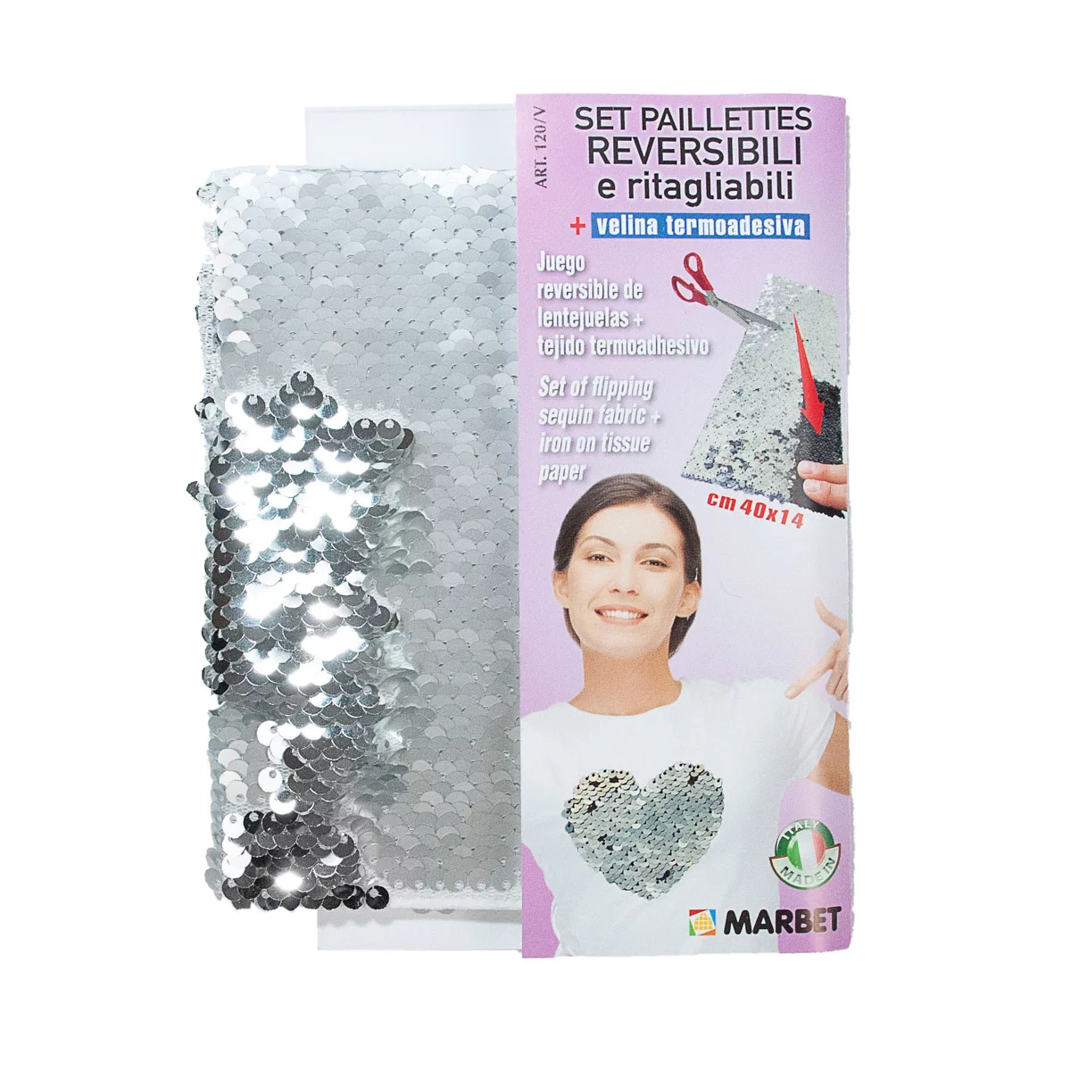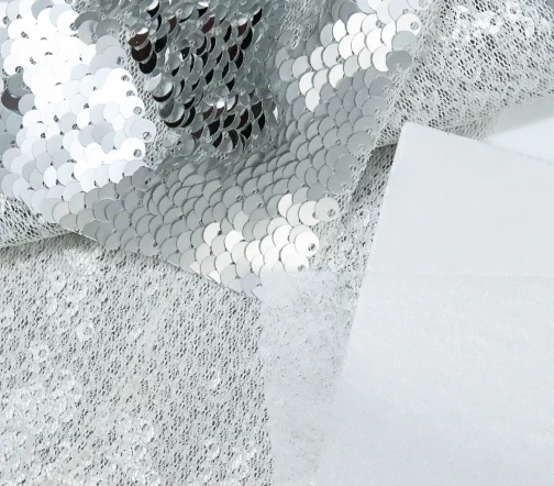 Пайетки двусторонние 40*14см, цвет серебро глянц./мат., (с термоклеевой основой), 120-V/052