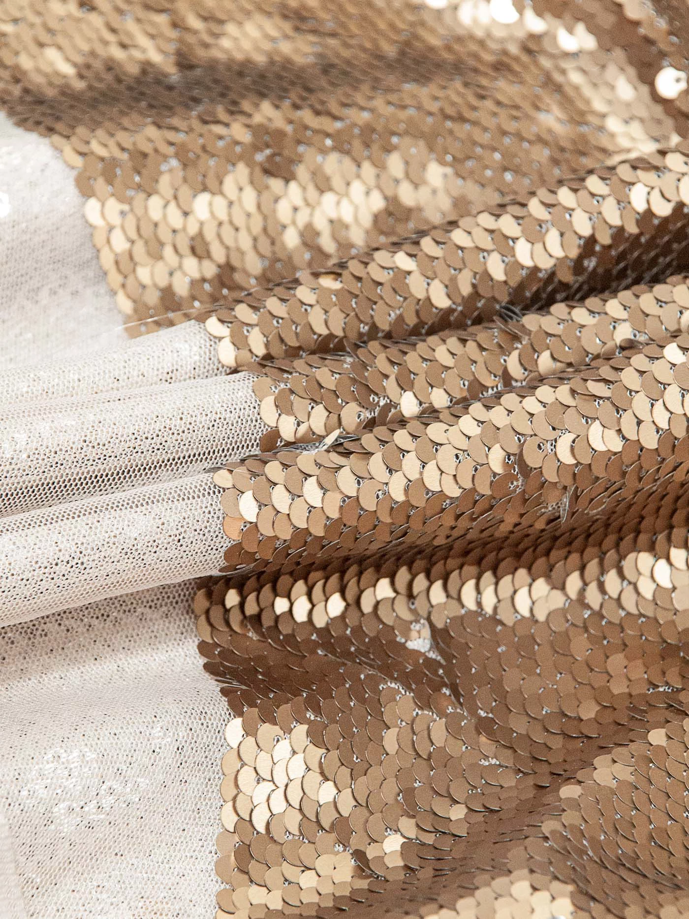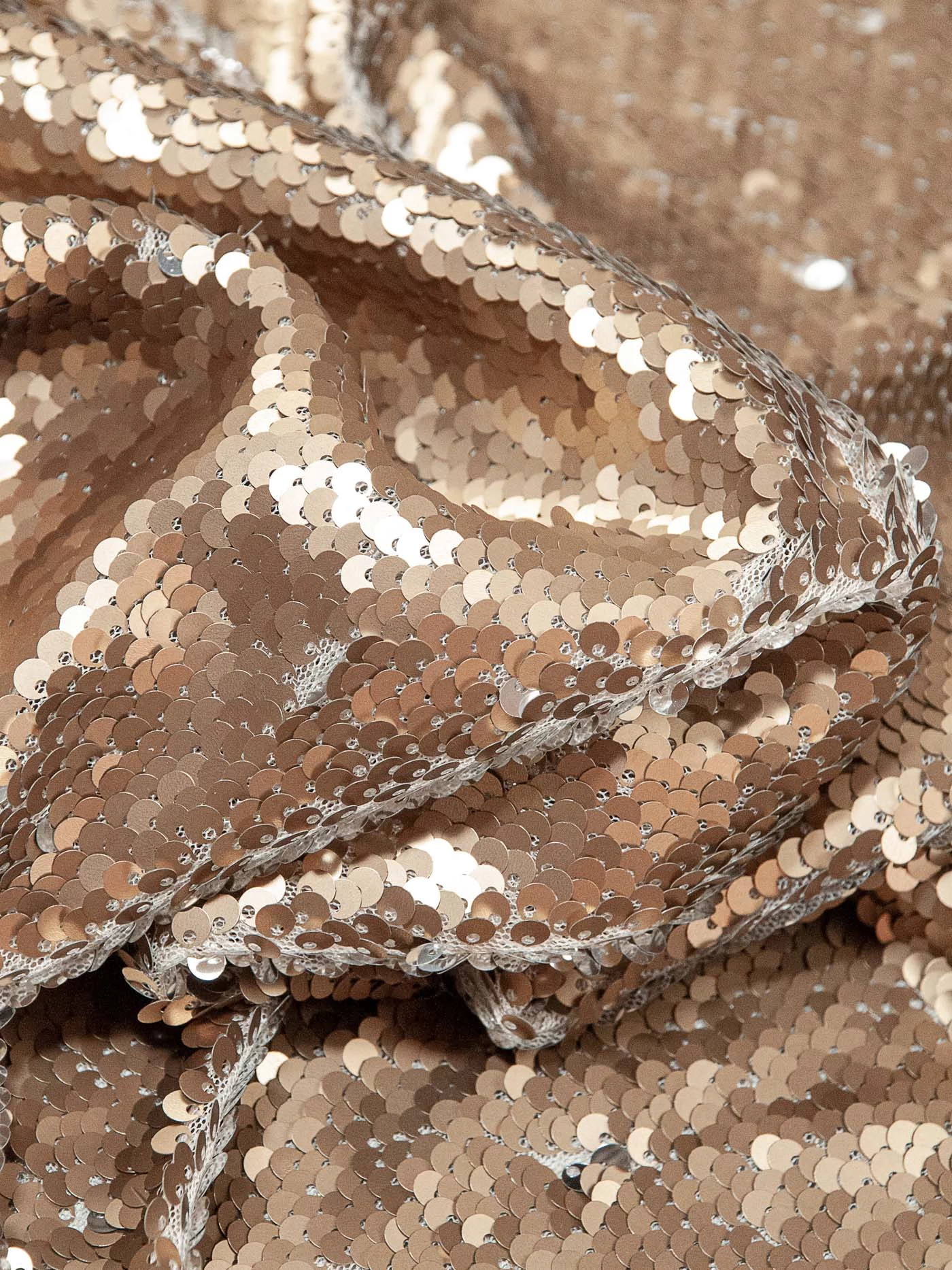 Ткань с двусторонними пайетками, цвет медь/серебро, 01308
