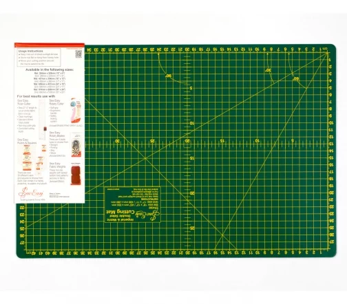 Размер мата 457 х 304 мм, с разметками и делениями - 430 х 280 мм. Мат выполняет роль обязательной подложки для раскроя тканей при помощи раскройного роликового ножа. Также рекомендуем использовать мат как защитную подложку для рукодельных работ в техниках декупаж и скрапбукинг.