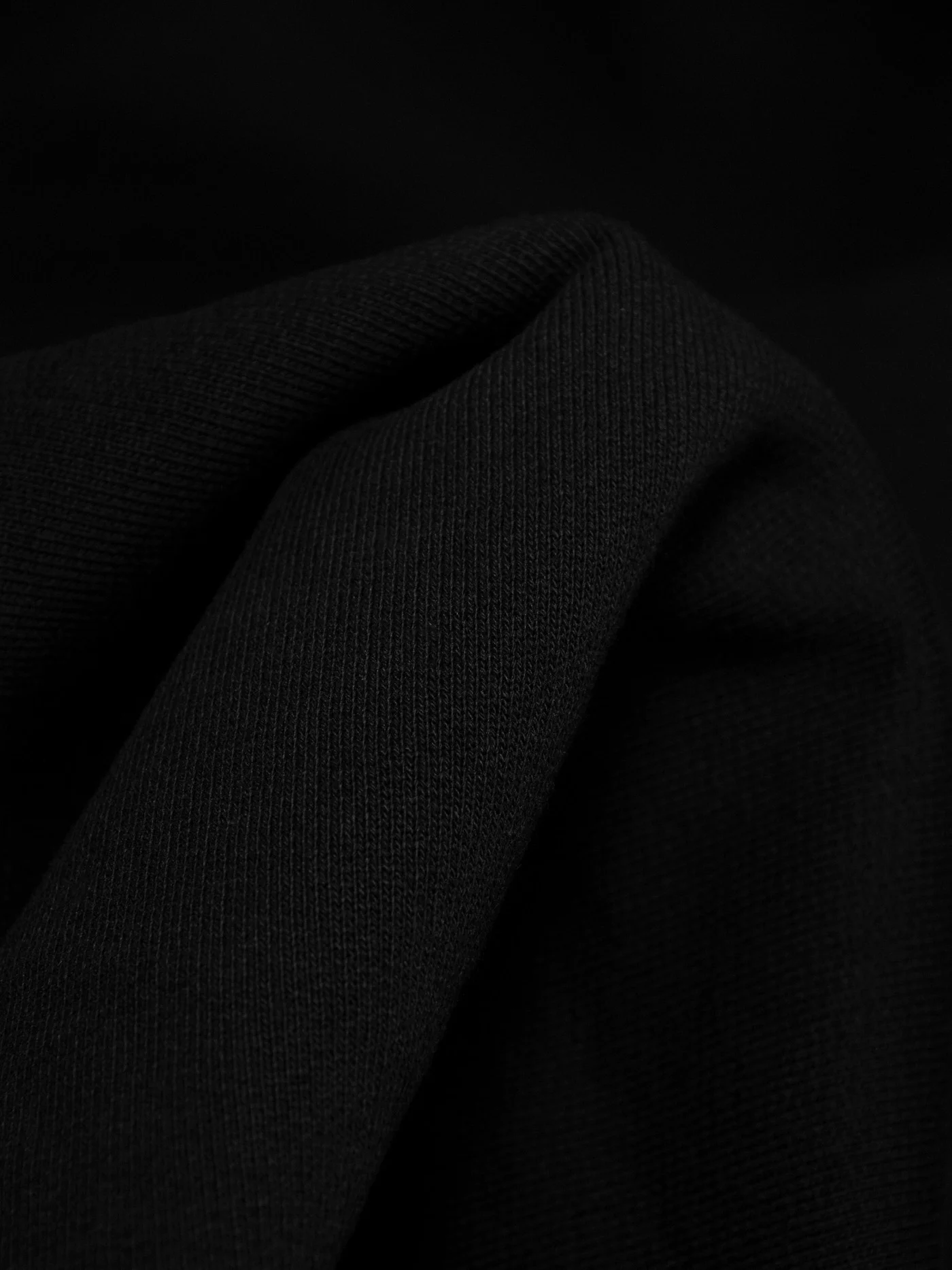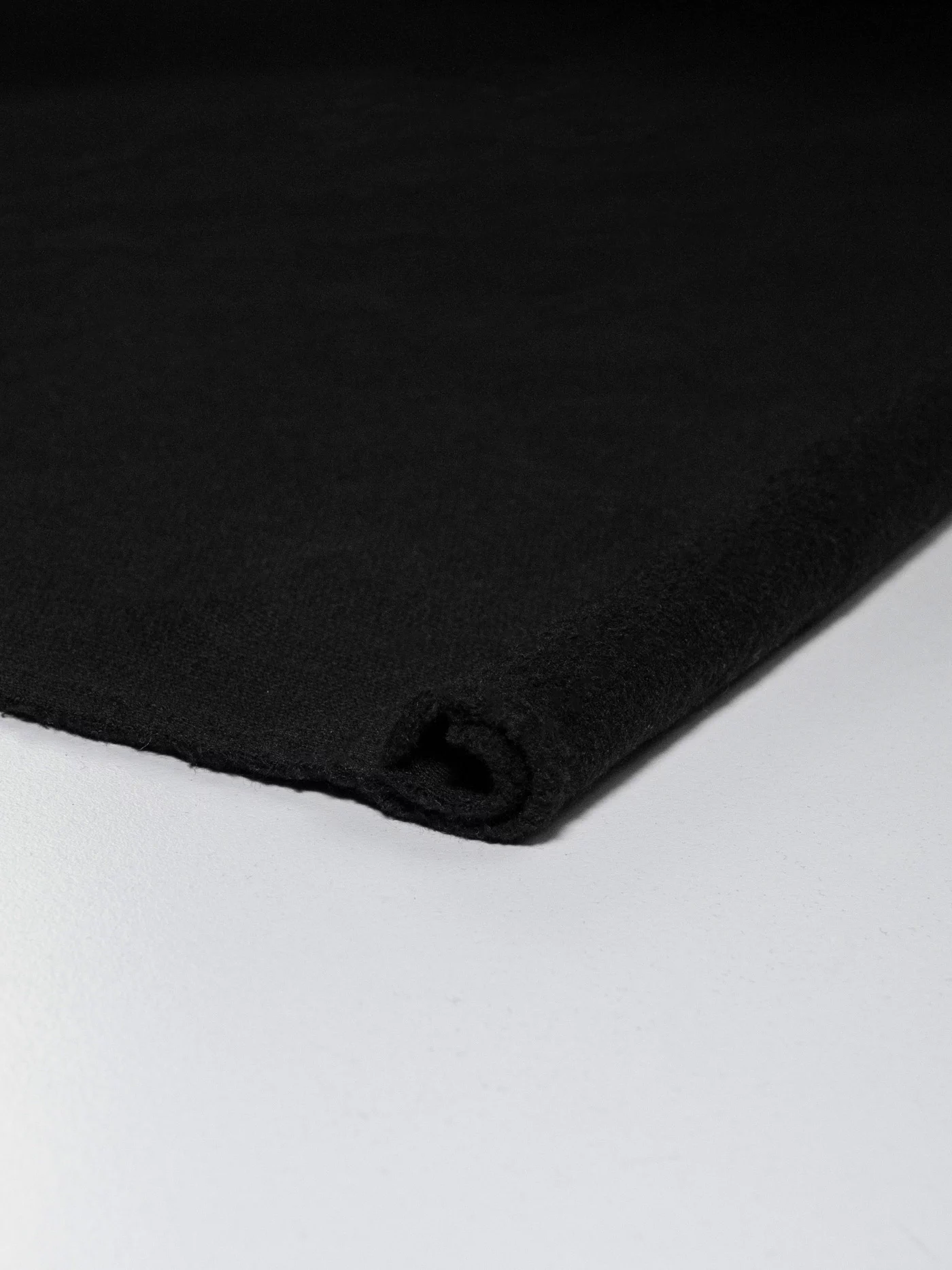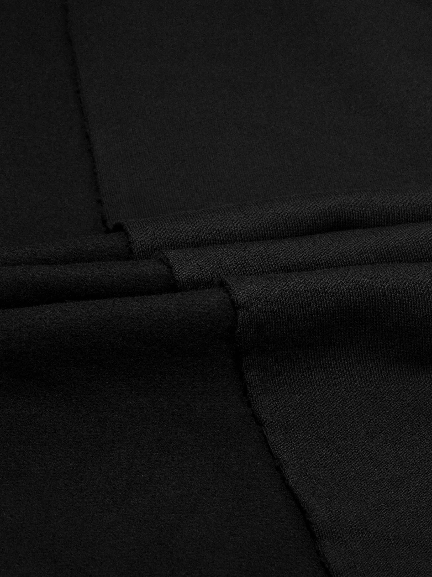Плотненький футер с флисовым начесом угольно черного цвета, не пилингуется, очень приятный тактильно. Для пошива утепленных худи, свитшота или костюма в стиле спорт-шик.