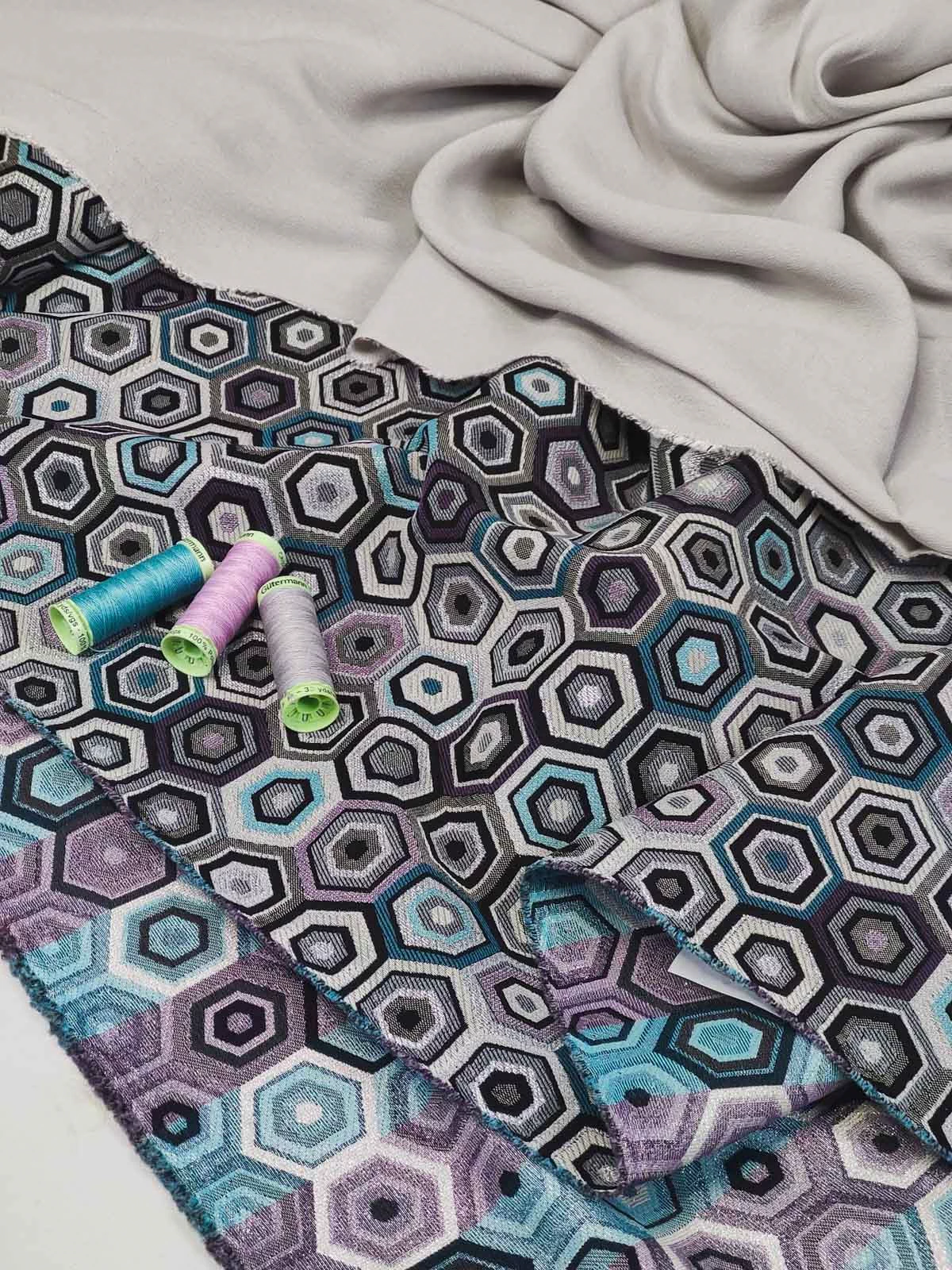 Регулярная коллекция жаккардов от итальянской фабрики Alta Moda. Изумительной красоты геометрический жаккардовый узор с еле заметным люрексом.