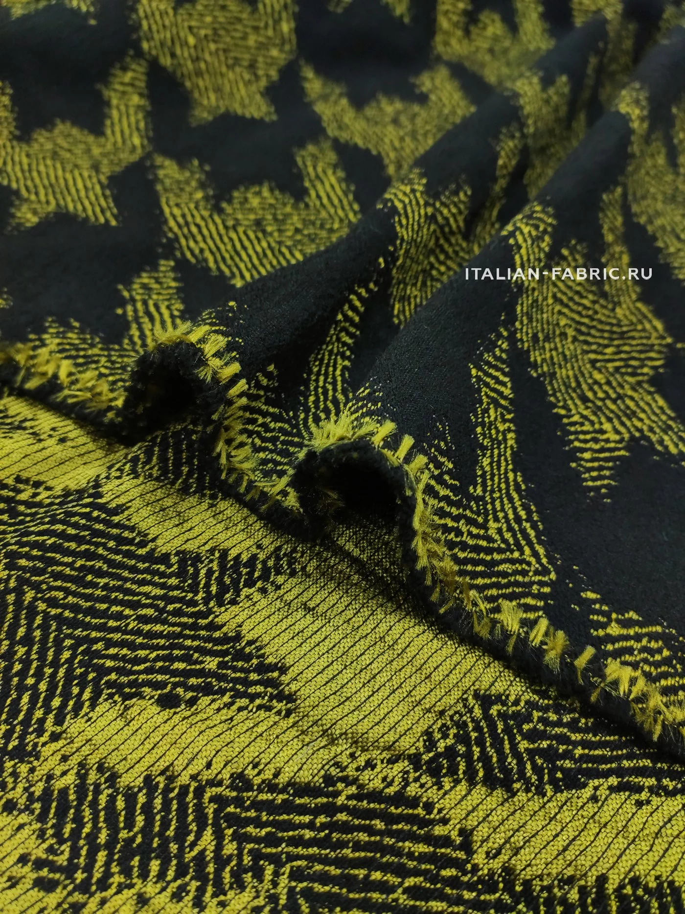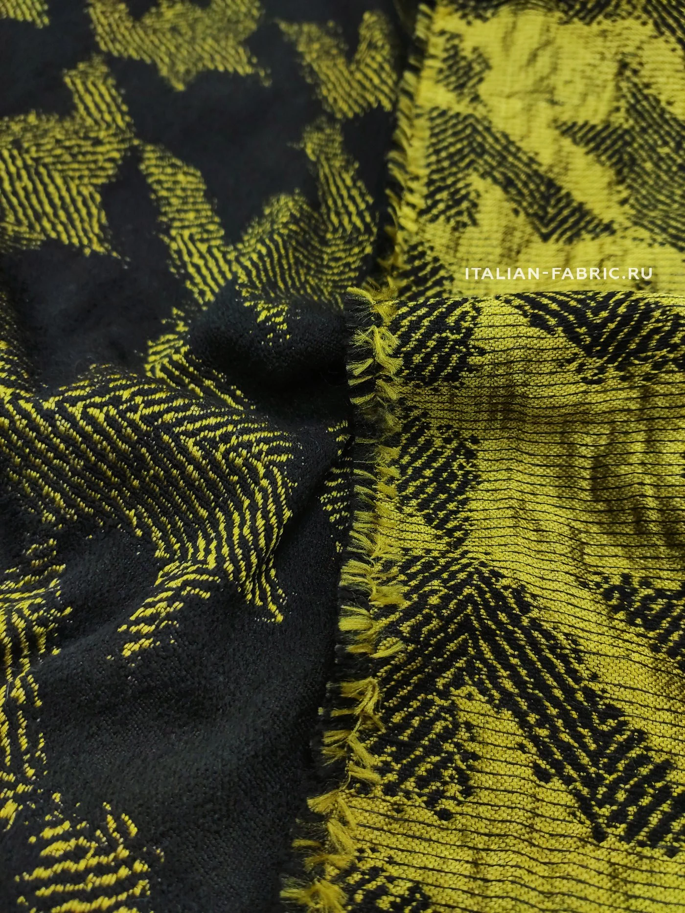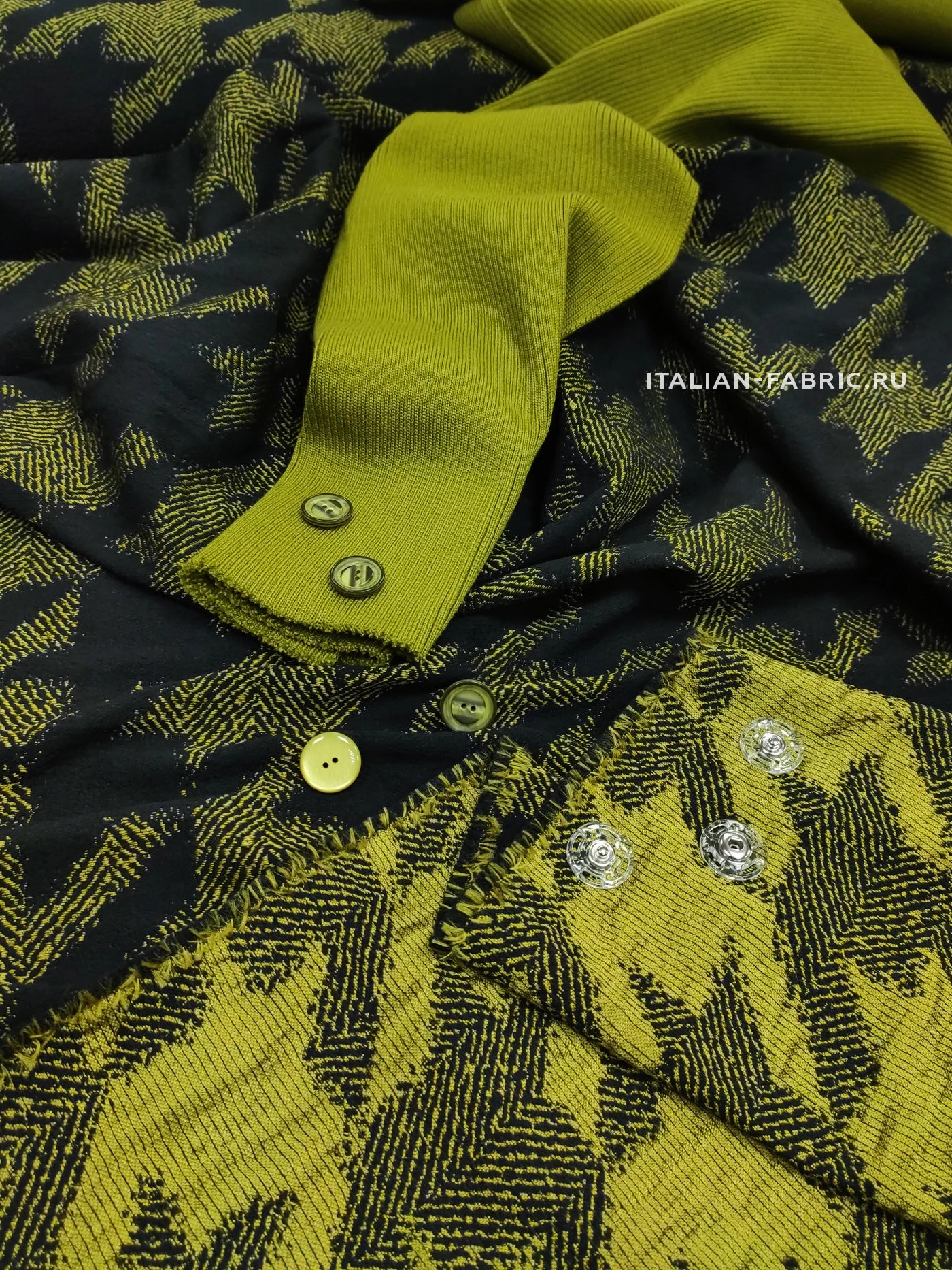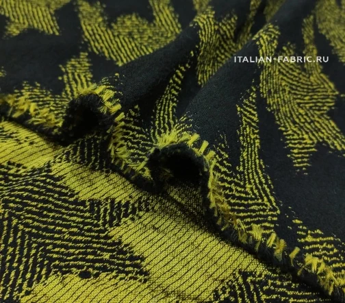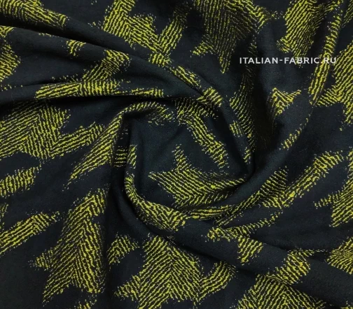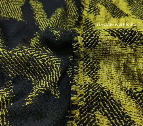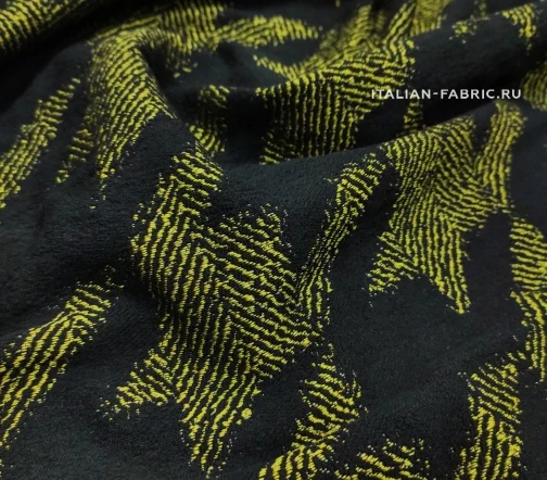 Самый эффектный принт 90-ых годов – «гусиная лапка», она же «куриная лапка», она же «собачий клык». Сегодня дизайнеры вносят новый взгляд на этот легендарный узор и играют с цветовым решением. Любое изделие из жаккарда с «собачим клыком» в сочетании яркого желто-зеленого и черного цветов будет очень стильным и привлекающим внимание. Материал мягкий и приятный на ощупь. Прекрасно подходит для пошива платьев, юбок, брюк, жакетов. Размер клыка крупный – 12х11 см.
