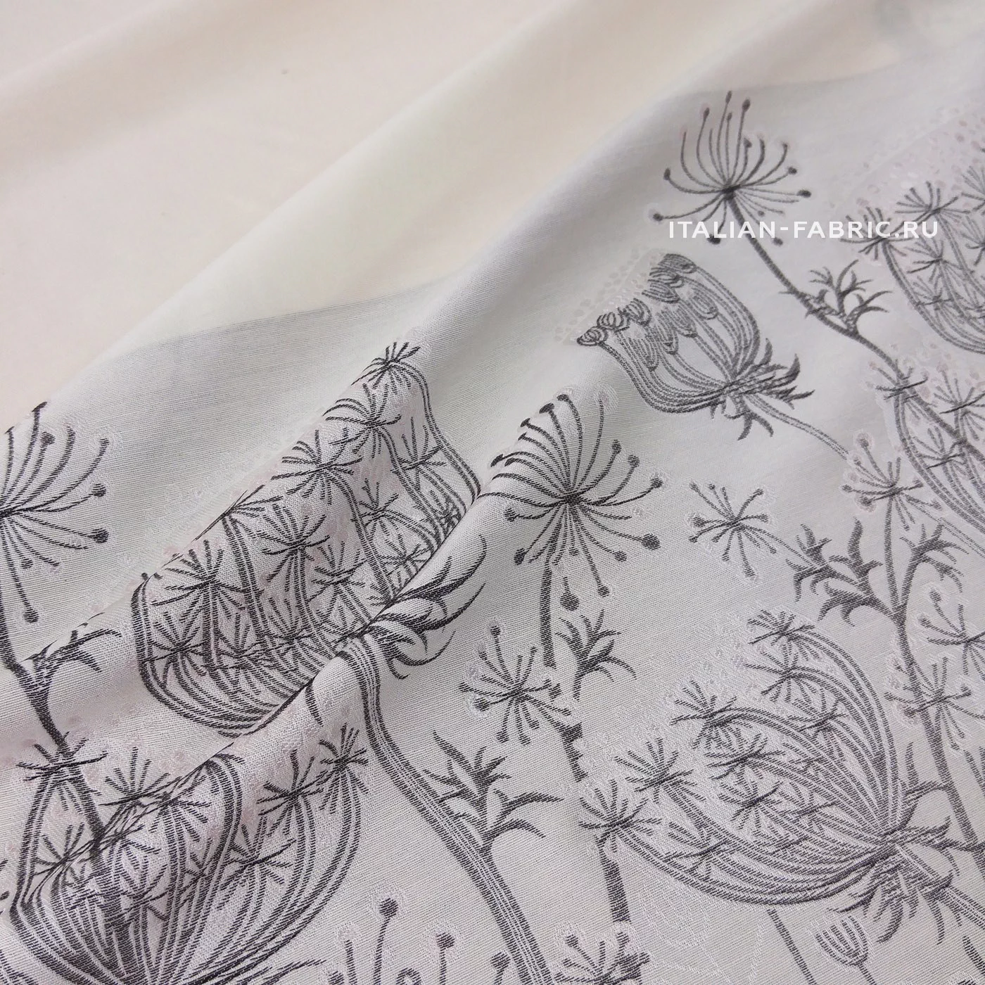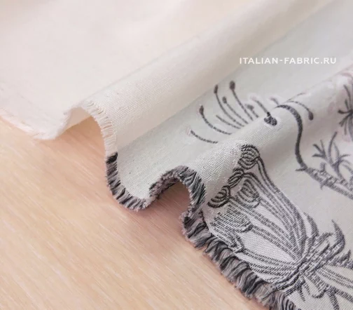 Размер купона: высота - 134см, шир. - 150см. Размер цветка: высота от 6 до 12см, ширина от 7 до 12см. Основной фон нежный бежево-розовый, возможны твидовые вкрапления. По нижней кромке вытканы стилизованные одуванчики.