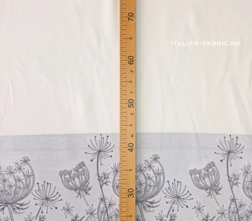 На ткани имеется брак (стрелка), непровязана одна петля в полотне, проходит практически посередине (на расстоянии от кромки - 70см, параллельно), что не сложно будет обойти при крое и пошиве изделия.